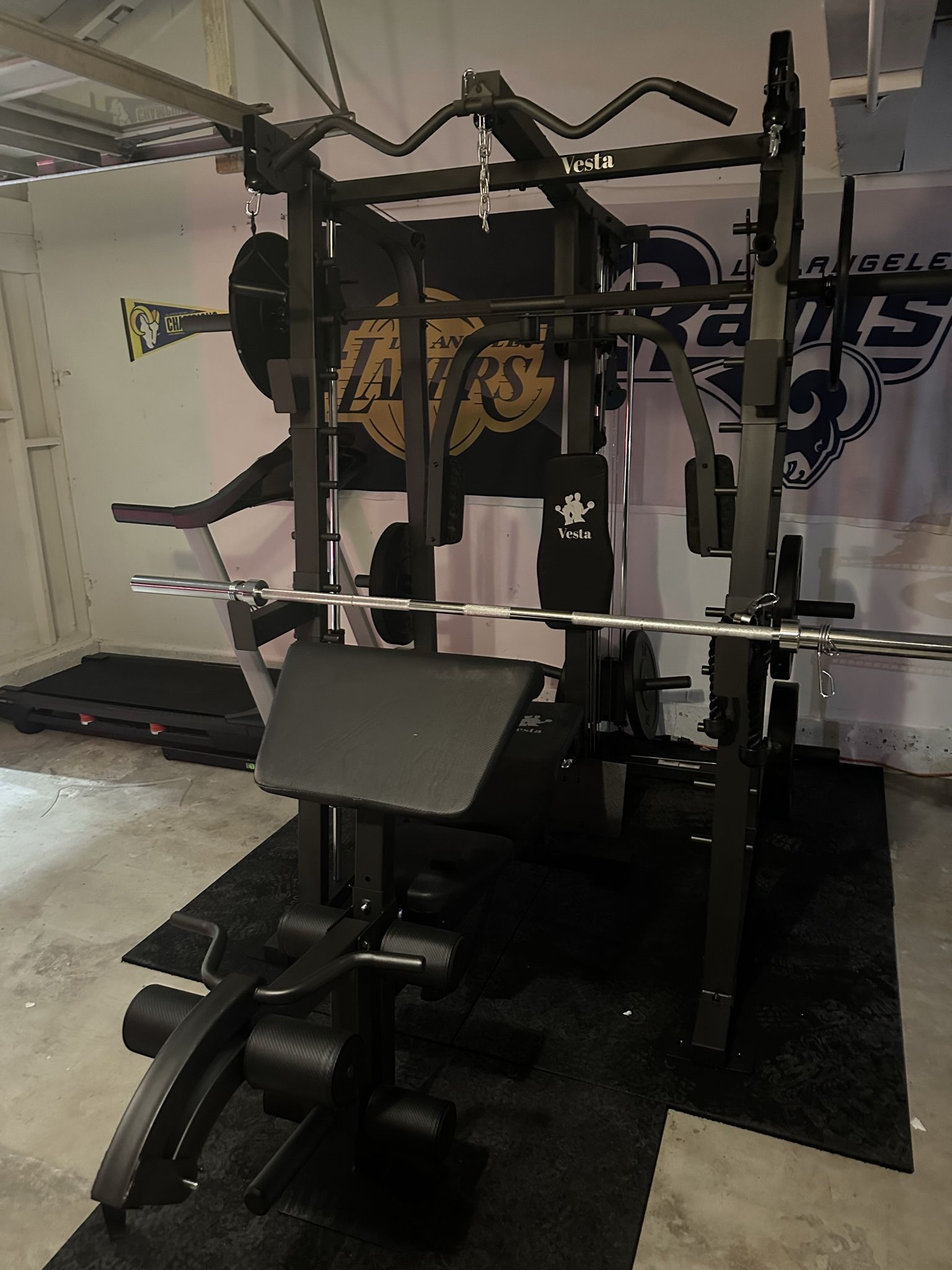 Includes Gym Equipment w/Weights! Let Me Help You Create Your Home Gym! New In Box! FREE DELIVERY AT FULL PRICE!Click Profile For More Gym Listings! Only Account! Cash / Venmo / Credit Cards / Finance Available! WARRANTY INCLUDED The Vesta Multi-function Smith Machine SM2001 is equipped with different strength machines and exercise station to bring the full gym experience to your home gym. It is designed to have a variety of exercises within one compact design The Ultimate ALL-IN-ONE Machine: Smith Machine Squat Rack Functional Trainer Lat Pulldown Weight Bar Preacher Curl/Leg Lever Bench Press Butterfly Arm Dimension for SM2001 Machine: 84“H x 74“L x 83"W Dimension for FID Bench: 36"H x 73"L x 19"H Upgrades or Add Ons •Free Switch to 245lbs Cast Iron plates 45s/35s/25s/10s/5s/2.5s •$40 3ft by 3ft Rubber Mats •$90 4ft 20lbs Curl OLYMPIC WEIGHTS GYM EQUIPMENT OLYMPIC STANDARD WEIGHT SLED PUSH SLED WEIGHTS WEIGHT PESAS SQUAT RACK POWER CAGE SMITH MACHINE BENCH PRESS INCLINE DECLINE BARBELL BAR HEX BAR BUMPER PLATES ADJUSTABLE BENCH FLAT BENCH BENCH DUMBBELLS DUMBELL ADJUSTABLE DUMBBELLS KETTLE BELLS DIP STATION PULL UPS PULL DOWN BATTLE ROPE BOWFLEX POWERTEC POWERBLOCKS HOIST BODY SOLID ROGUE FITNESS EXERCISE