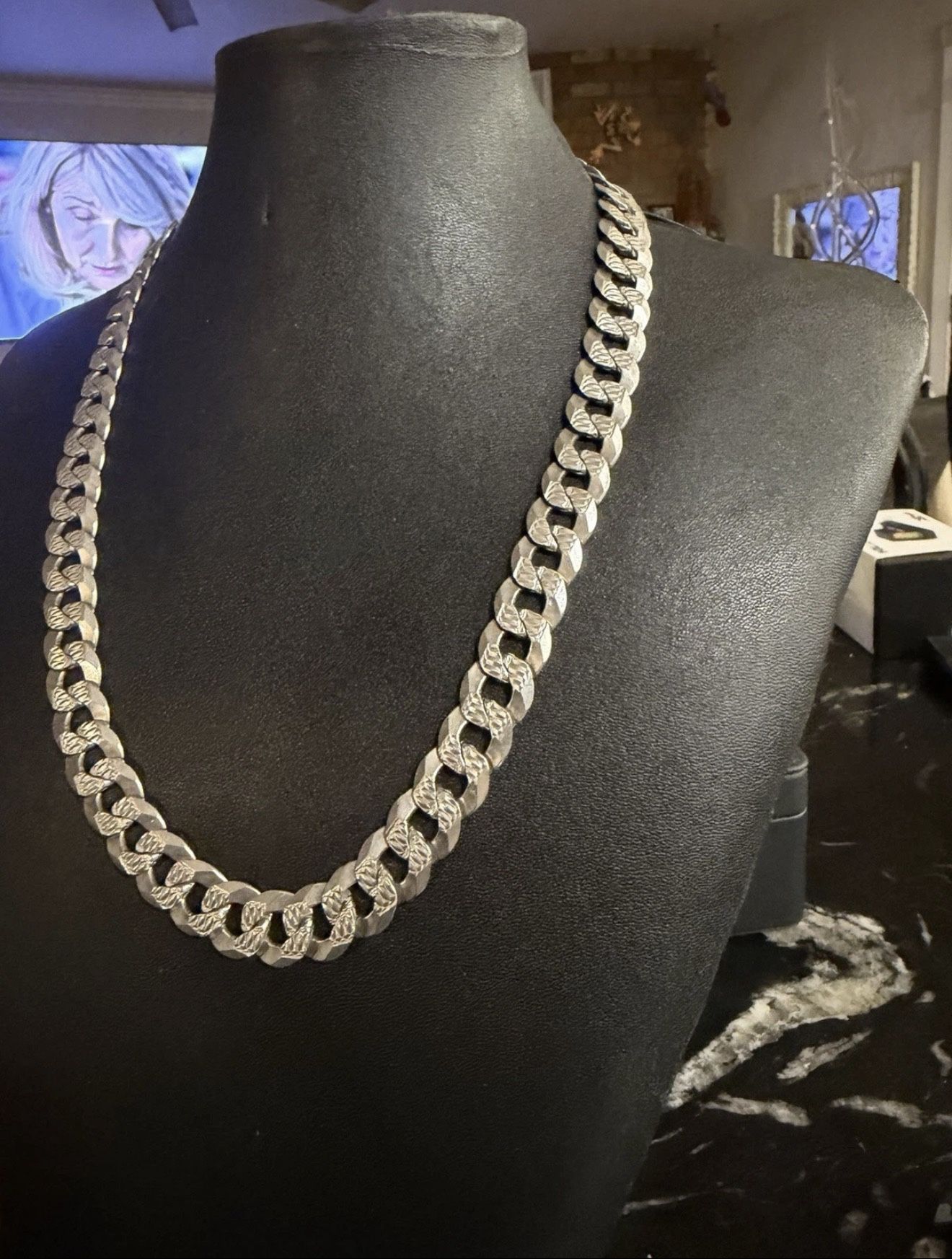 Italy 925 Sterling Silver Cuban Curb Link Necklace 13.3mm Thick 92.3 grams 22.5”