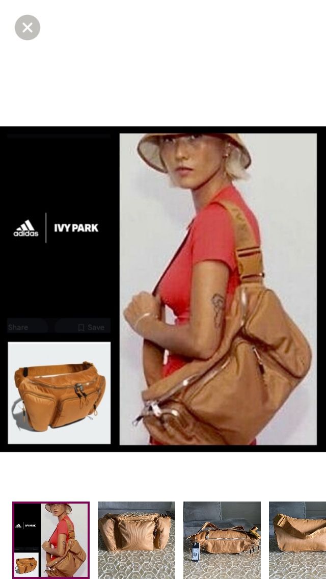 Adidas x Ivy Park Oversize Fanny Pack in Mesa/brown — the oversized, statement waist/cross-body bag from the adidas x Ivy Park collab Beyoncé’s involvement made highly sought-after. It’s sold in “Mesa” (tan/brown) and has the exaggerated silhouette and multiple zip pouches that make it stand apart from typical belt/fanny bags. •One-size fits most •Large scaled design – looks oversized worn at waist or cross-body •Multiple zippered compartments and adjustable strap •Adidas + Ivy Park branding Measures 17” x 10”. Brand new, never worn with tags attached. Tiny mark in interior to prevent retail return.