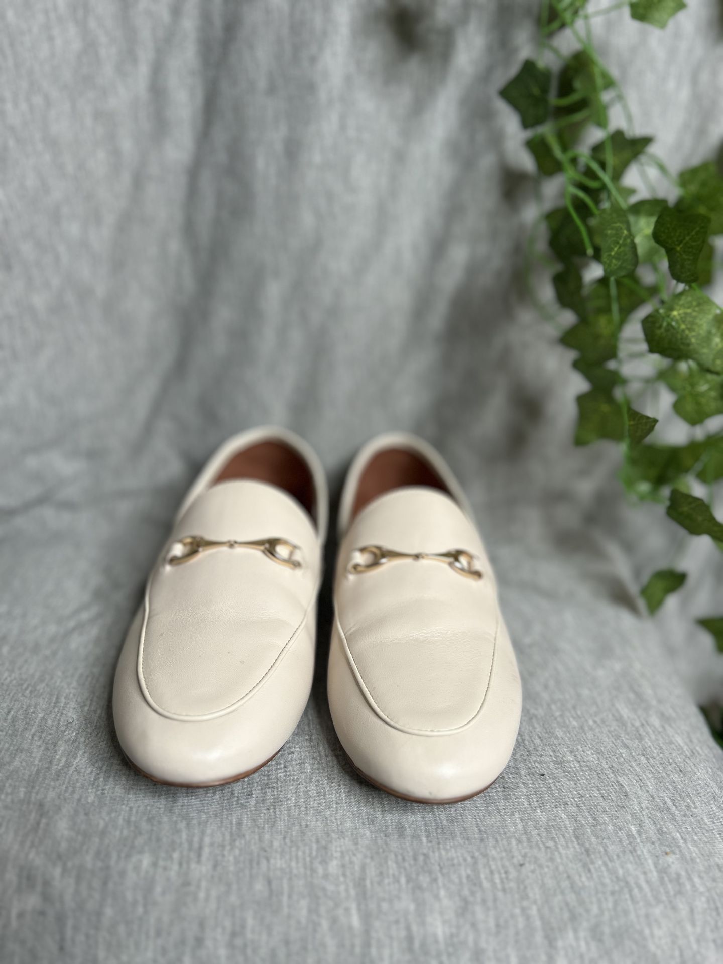 Coach Cream Leather Horsebit Loafers Authentic Coach leather loafers in a soft cream neutral color featuring signature gold-tone horsebit detail. Timeless, polished silhouette with a low stacked heel for all-day comfort. • Genuine leather upper • Gold-tone horsebit hardware • Slip-on design • Low stacked heel • Classic minimalist style Gently worn with light creasing consistent with normal wear (see photos). Structurally in great condition. Perfect for office wear, business casual, travel, or capsule wardrobe styling. Smoke-free home. Message with questions 💌