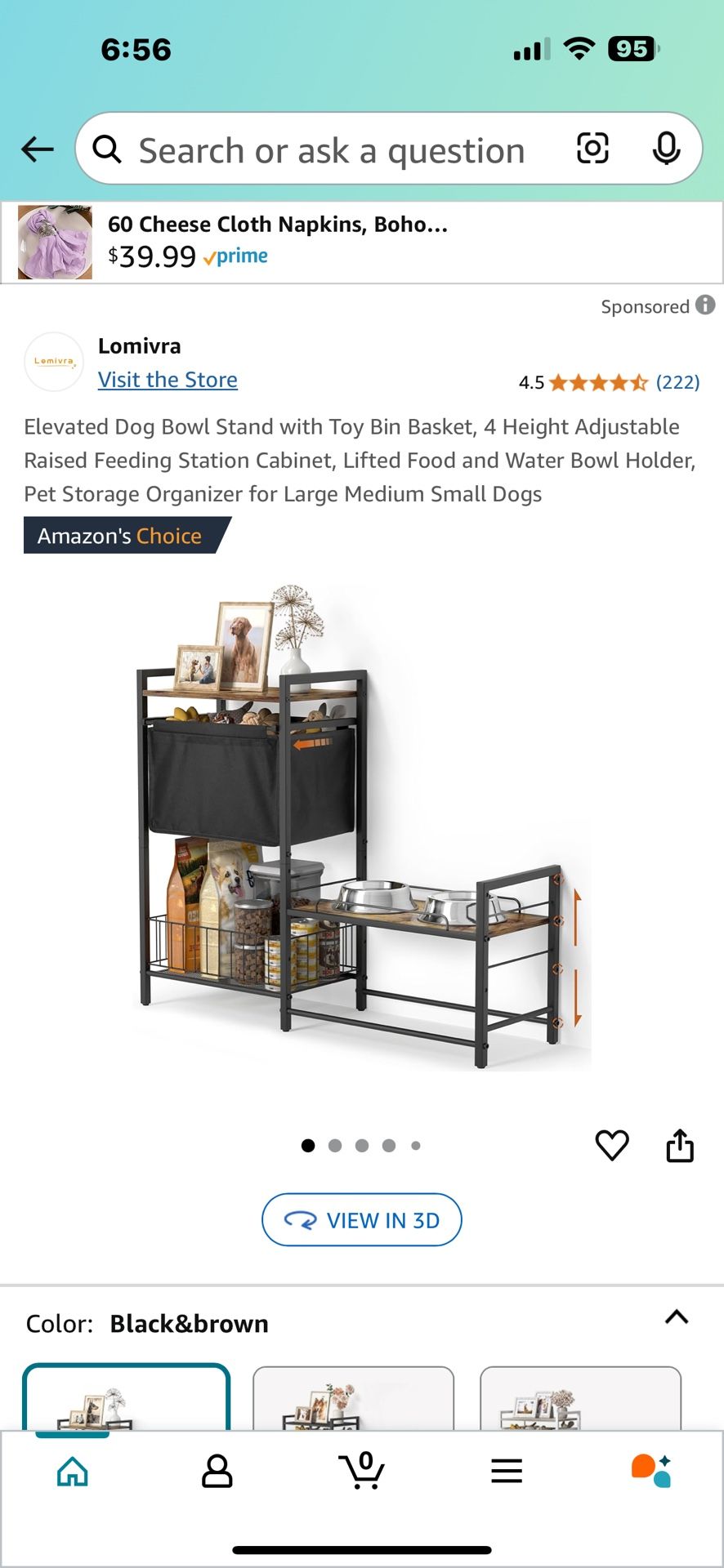 Elevator Dog Stand With Toy Bin Basket