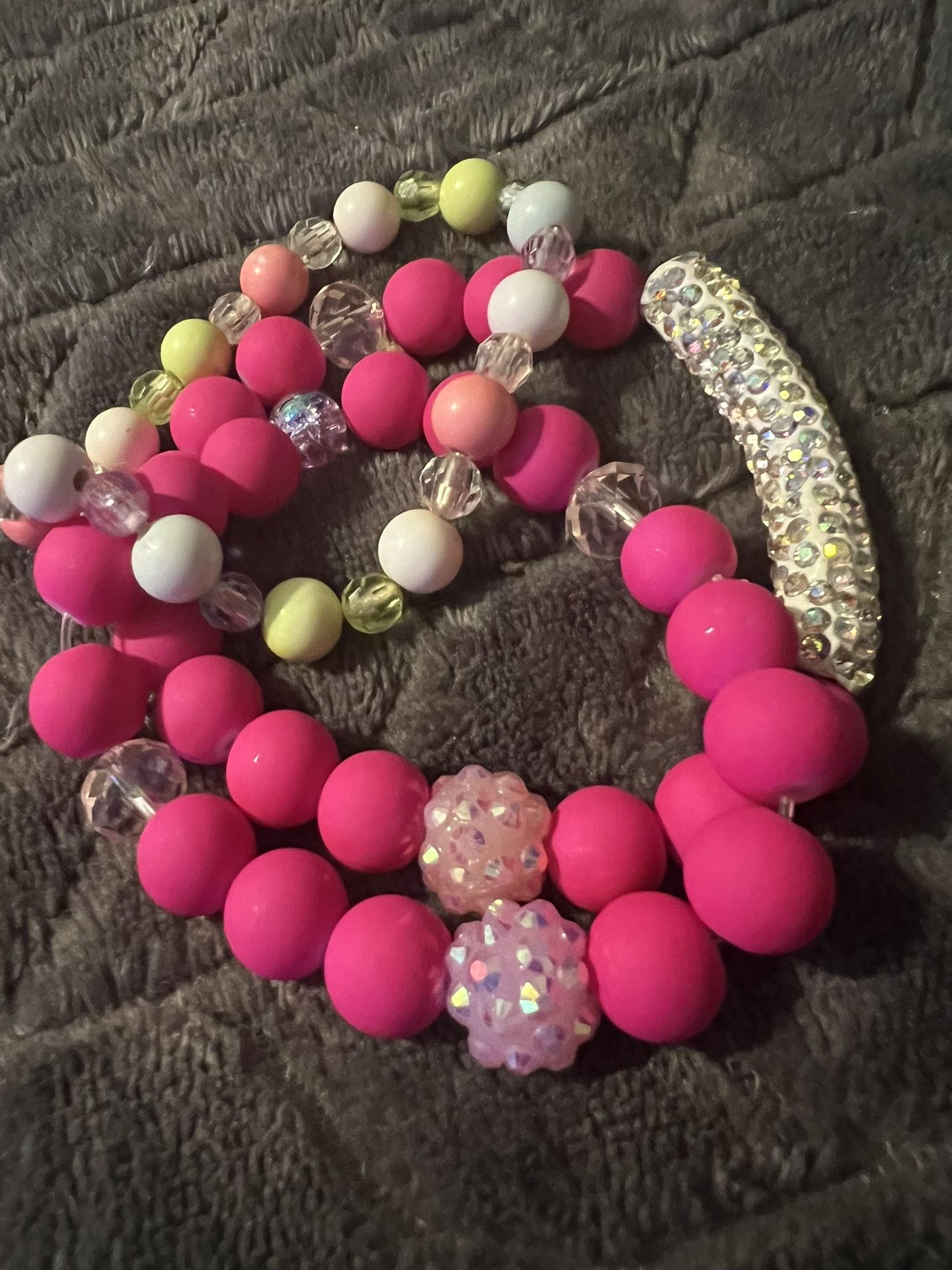 3 pieces beaded bracelet set. Handmade Pink and Bling Stretchable bracelets Price is for all 3. Will not sell separately