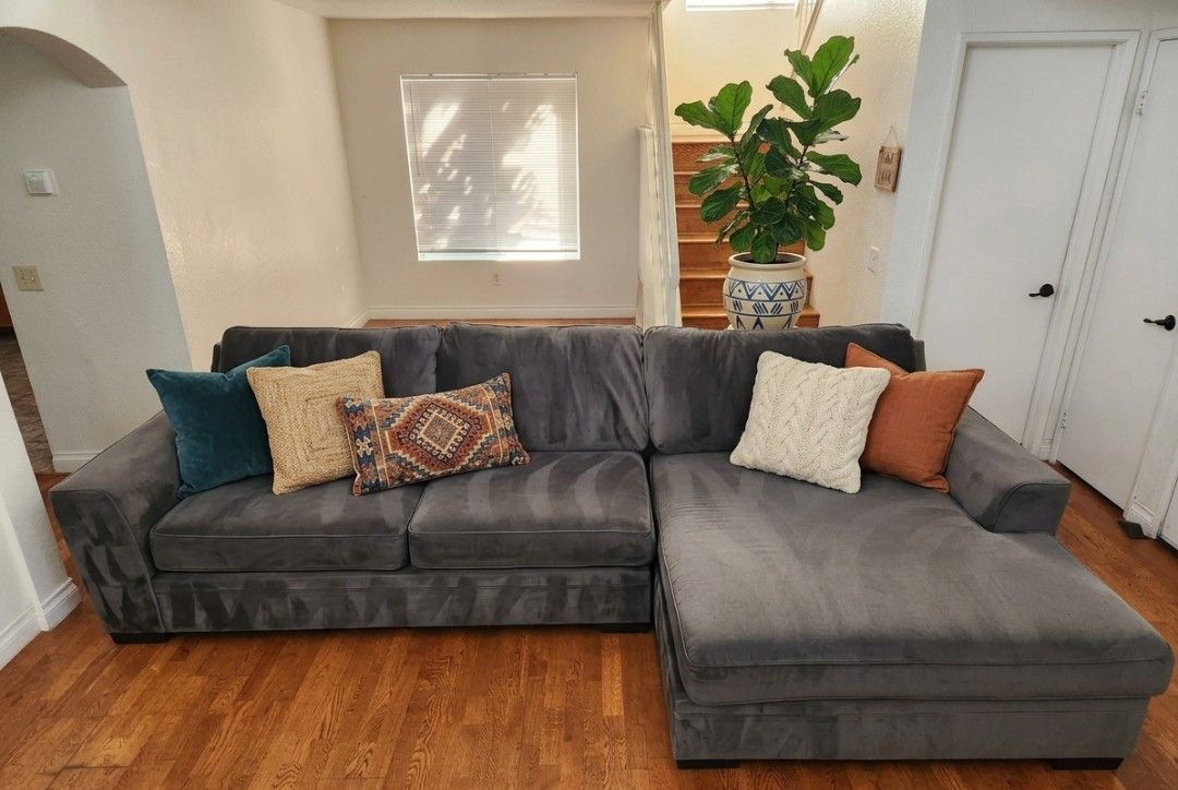 Oversized Living Spaces Gray Sectional – Like New, Deep & Super Comfy!
