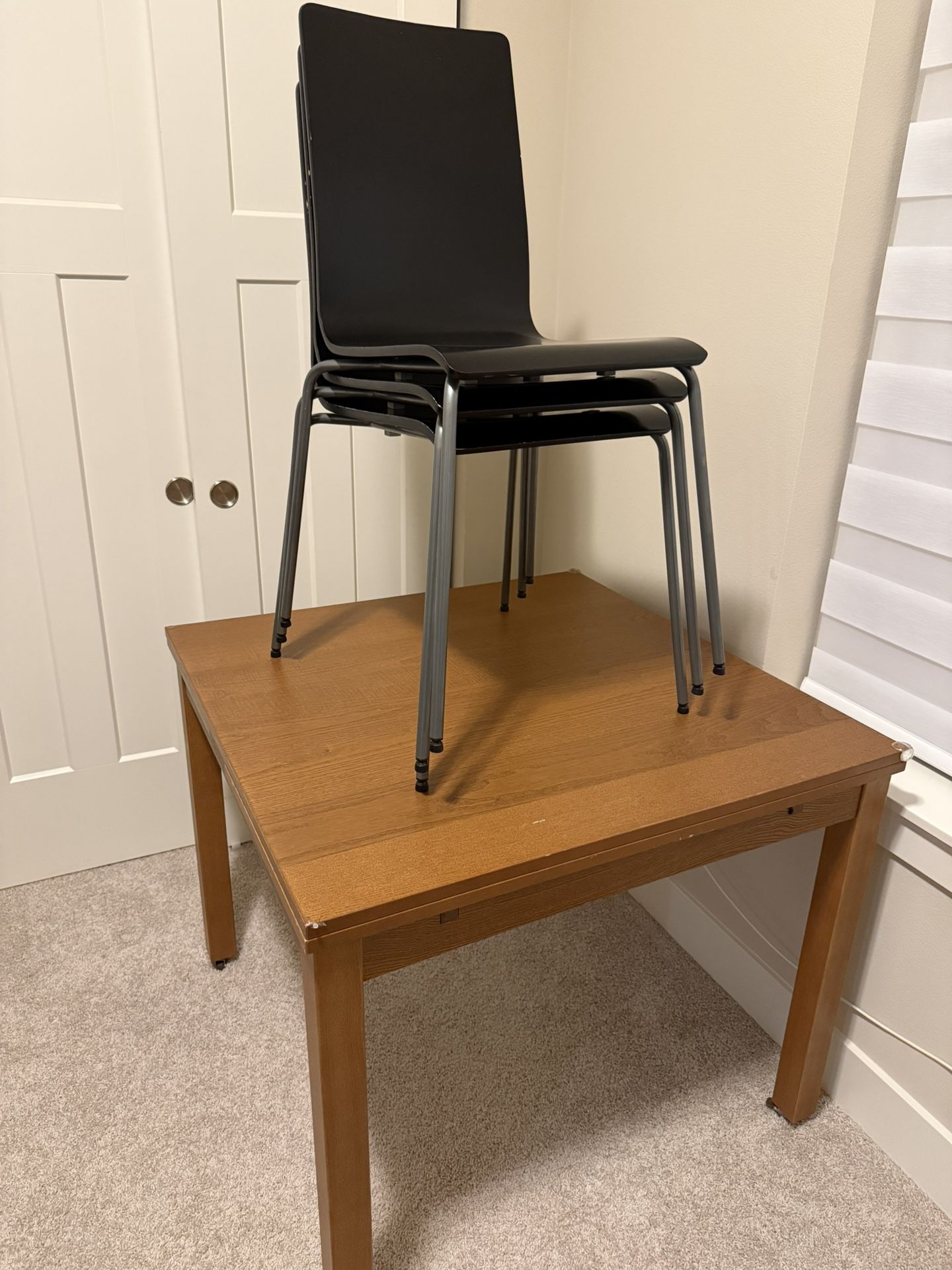 Extendable dinning table with 3 IKEA chairs. It supports 6 by expanding the sides. It will support 4 without extension. It's the ikea bjursta extendable table 21198 Pickup in Bothell.