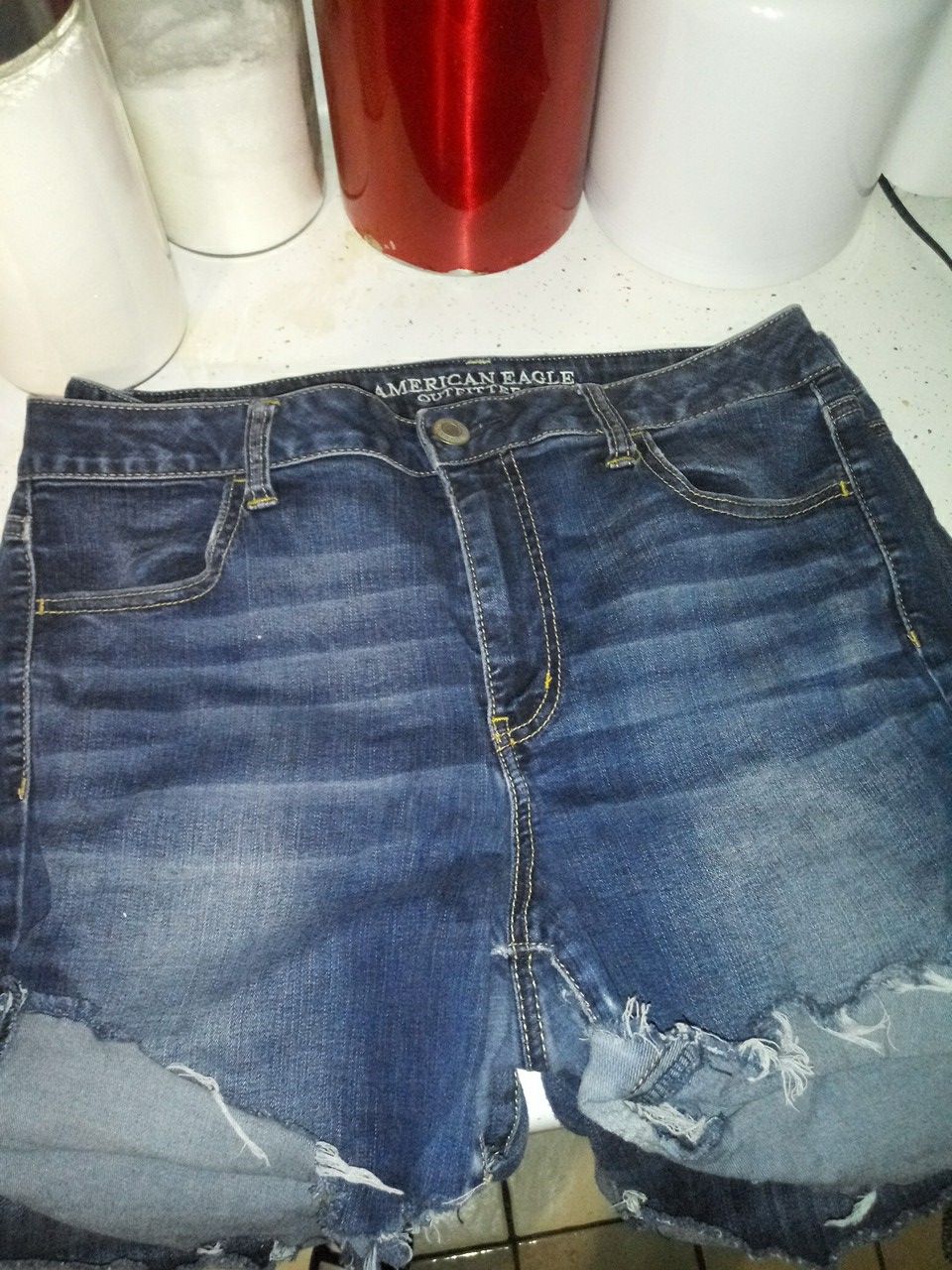 2 pairs of American Eagle Shorts one pair is a short length the others longer mid thigh length like new. Both pairs for $15