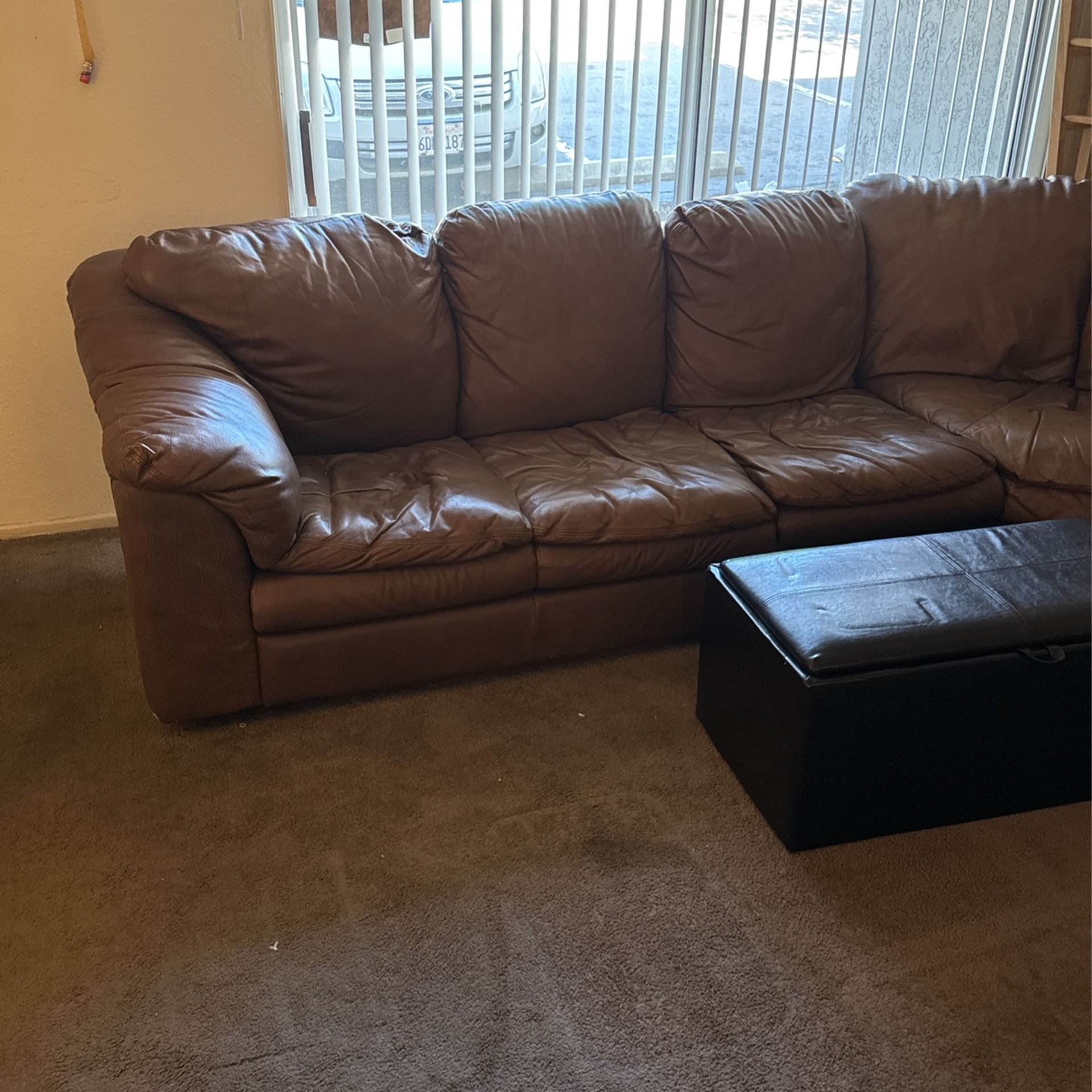 Brown leather sectional couch. Roughly 8’x10’ in length. Extremely comfortable, and can easily sleep two people if needed. Not a pullout, but easily has the length for two adults to lay down fully. Been in the family for years, but the new place doesn’t really fit the old leather couch aesthetic. Wish I didn’t have to get rid of it, but it’s time. Bought new probably 10 yrs ago for ~$5k. I think $750 is super fair when you see the condition and actually sit down on it you’ll be sold immediately
