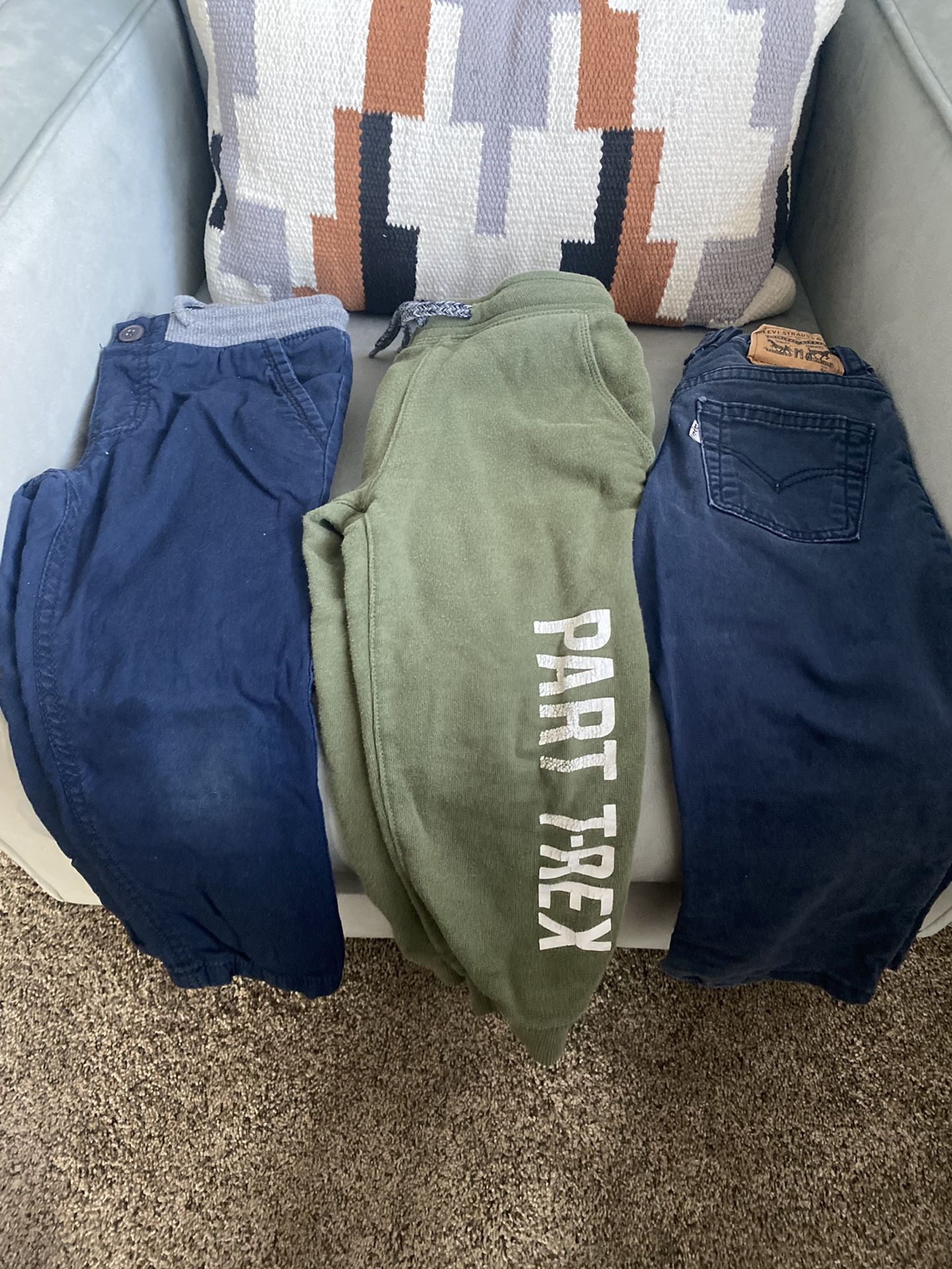 Levi’s Sz 4 Regular good condition some slight fading around the knees and small dark stain ***see pics Green joggers Sz 4/5 but shrunk so I find them to be more Sz 3/4 Blue drawstring functioning winter pant. Warm lined inside for colder days. Fair condition due to dark spots ***SEE PICS PICK UP ONLY ‼️ SERIOUS BUYERS ONLY‼️ FLAKES WILL BE BLOCKED ‼️ VICTORVILLE 395 & Bear Valley Address sent ONLY when ready to pick up. Bring exact change. Venmo, Zelle or Apple Pay accepted.