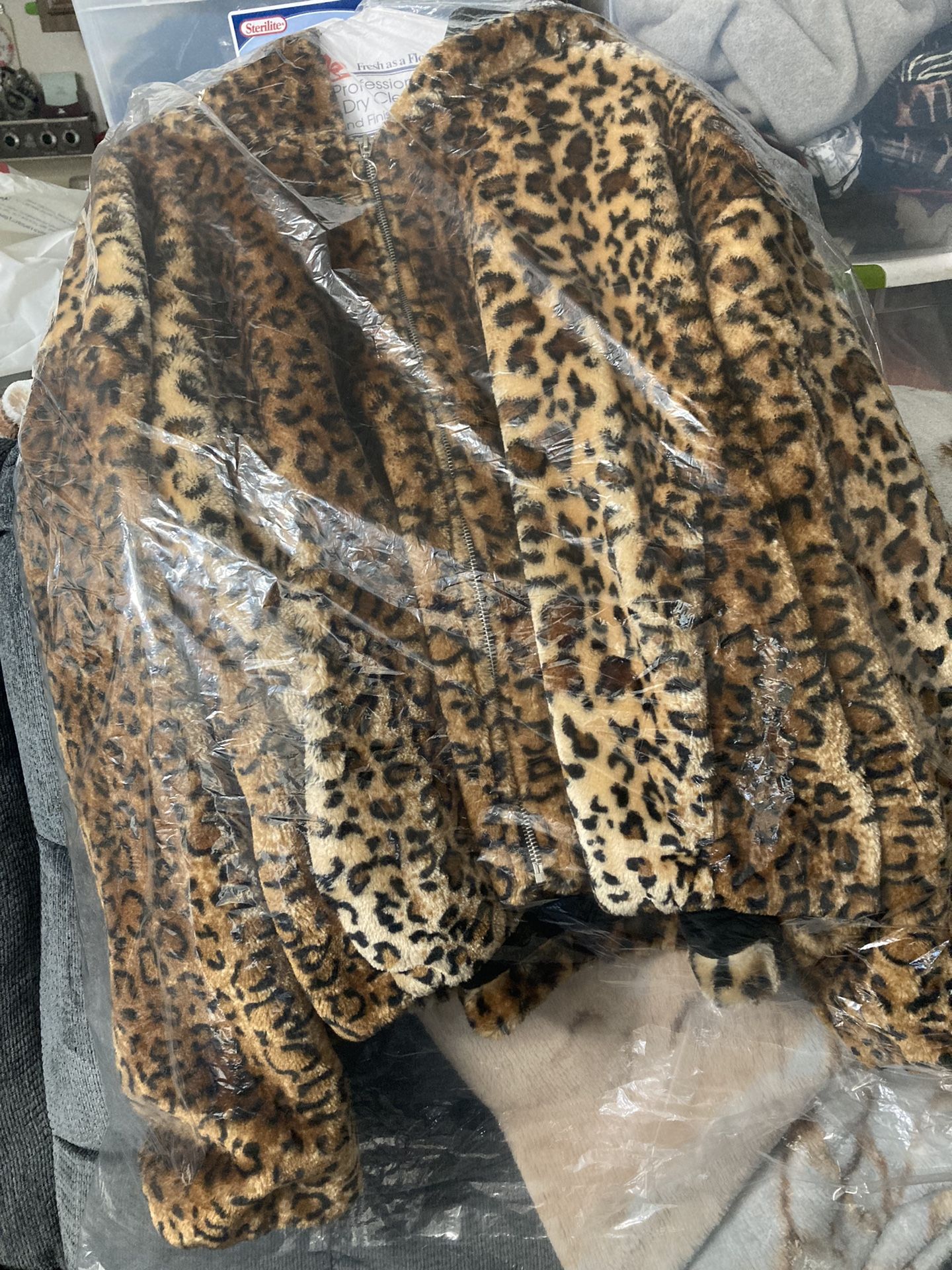 Just freshly dry cleaned beautiful animal print has a zip up and pockets has a hood alastic at the wrists asking 30cash it is a 3x hoodie and from a smoke free home and no pets