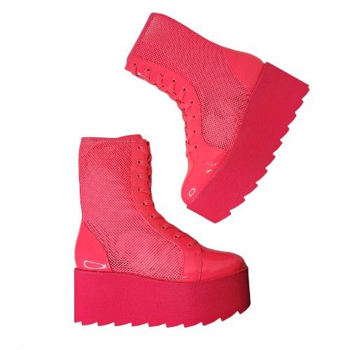 Y.R.U. Hot Pink Bloq Mesh Platform Boots