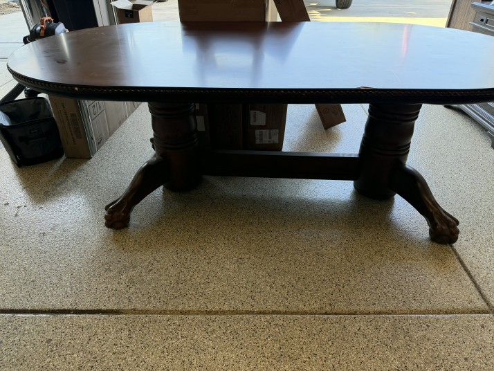 Chairs need to be re upholstered Will sell table without chairs Solid quality wood material Willing to separate chairs from table