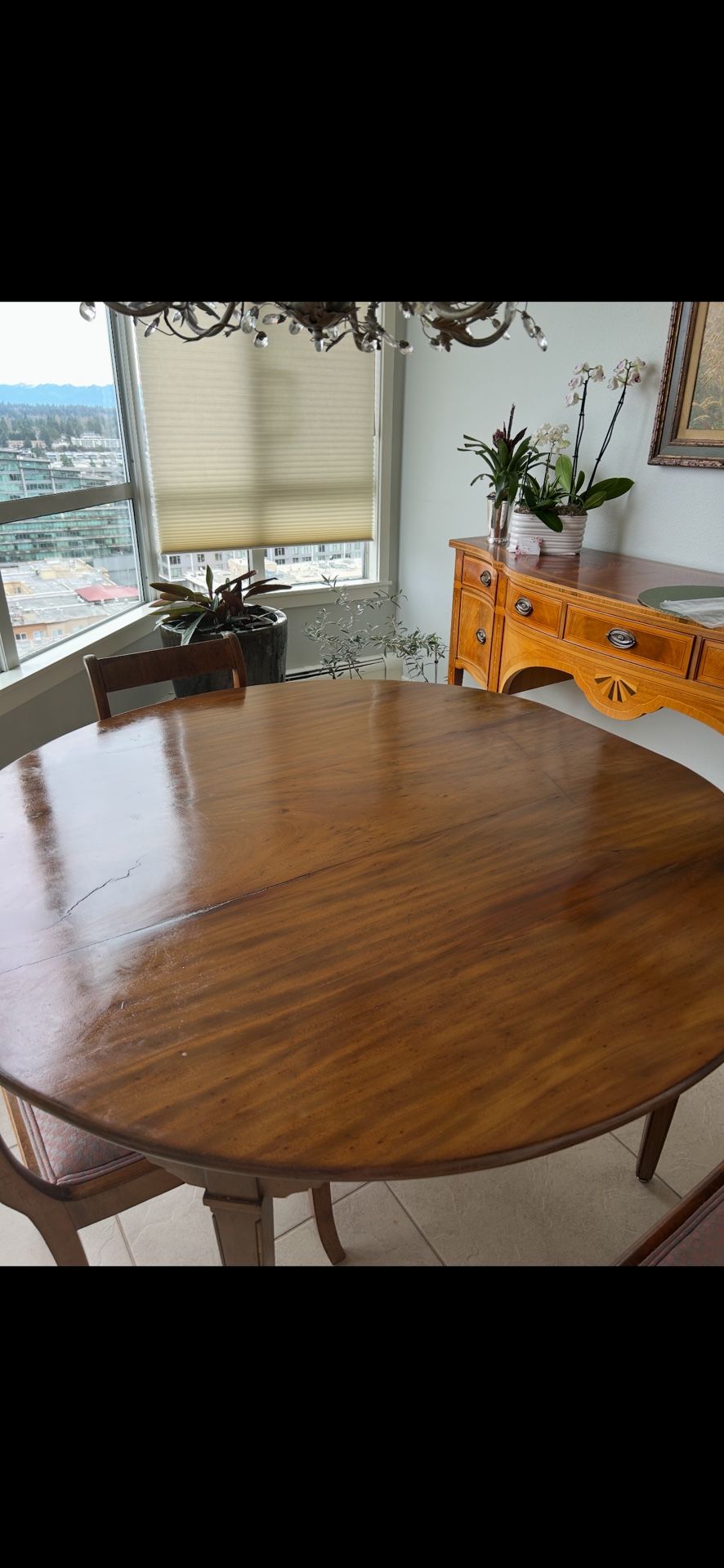 Gorgeous old Table And Chairs the flaw on the top of the table is just part of the wood. It’s not scratched or anything. It’s just the wood grain. It’s very old table 4 chairs and it has a leaf that you can take out beautiful set. Very old thank you