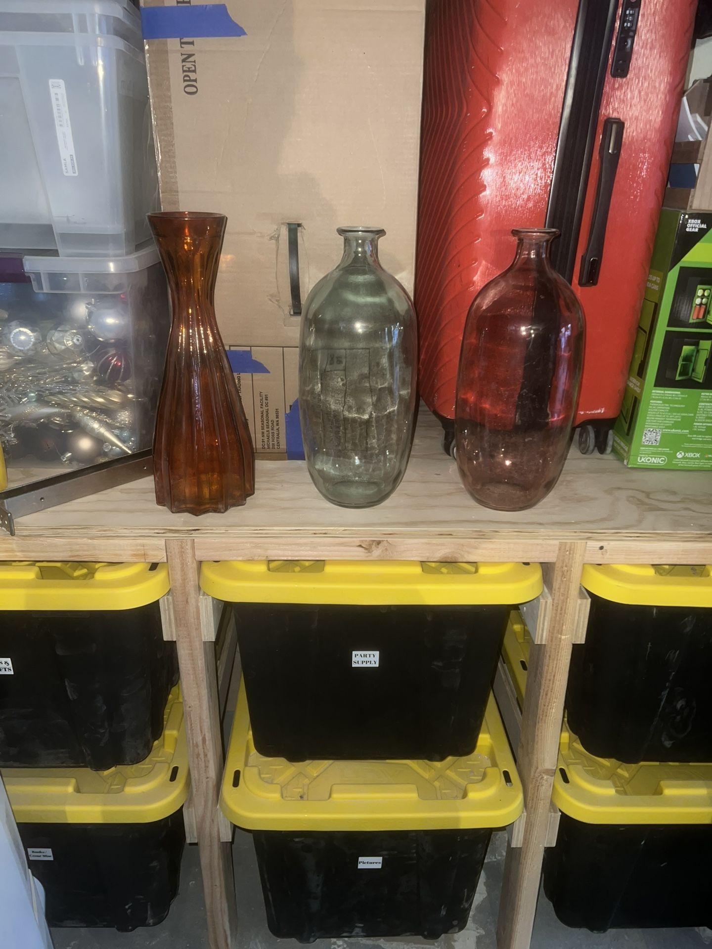 Colored glass vases Orange blue pink $10 each or $30 for all 3