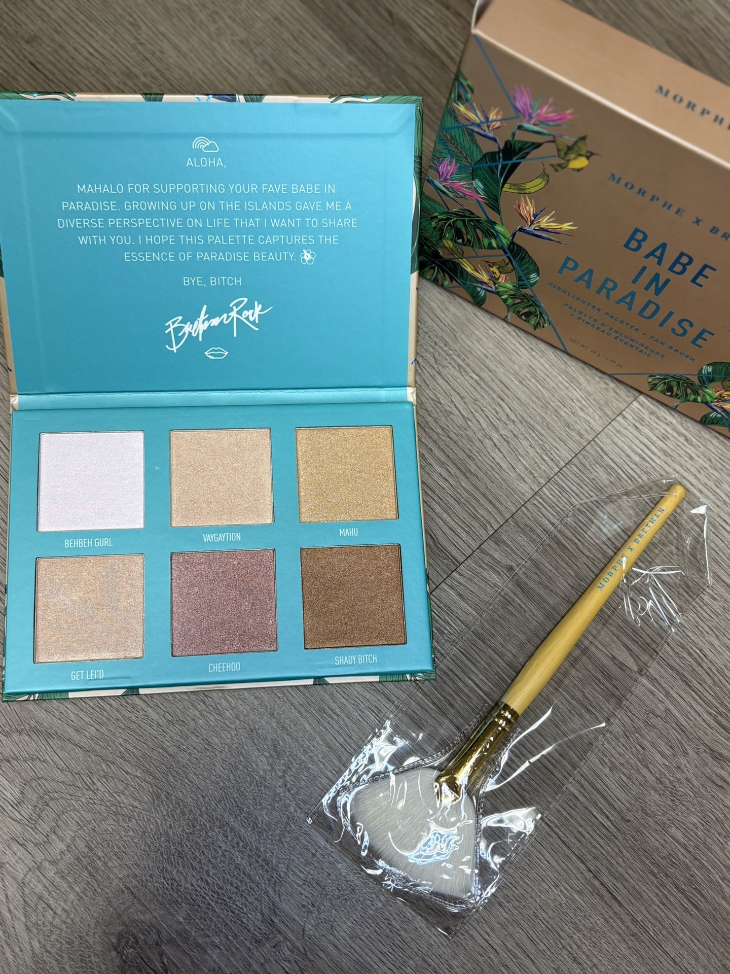 Morphe x Bretman Babe In Paradise highlighter palette + Fan Brush