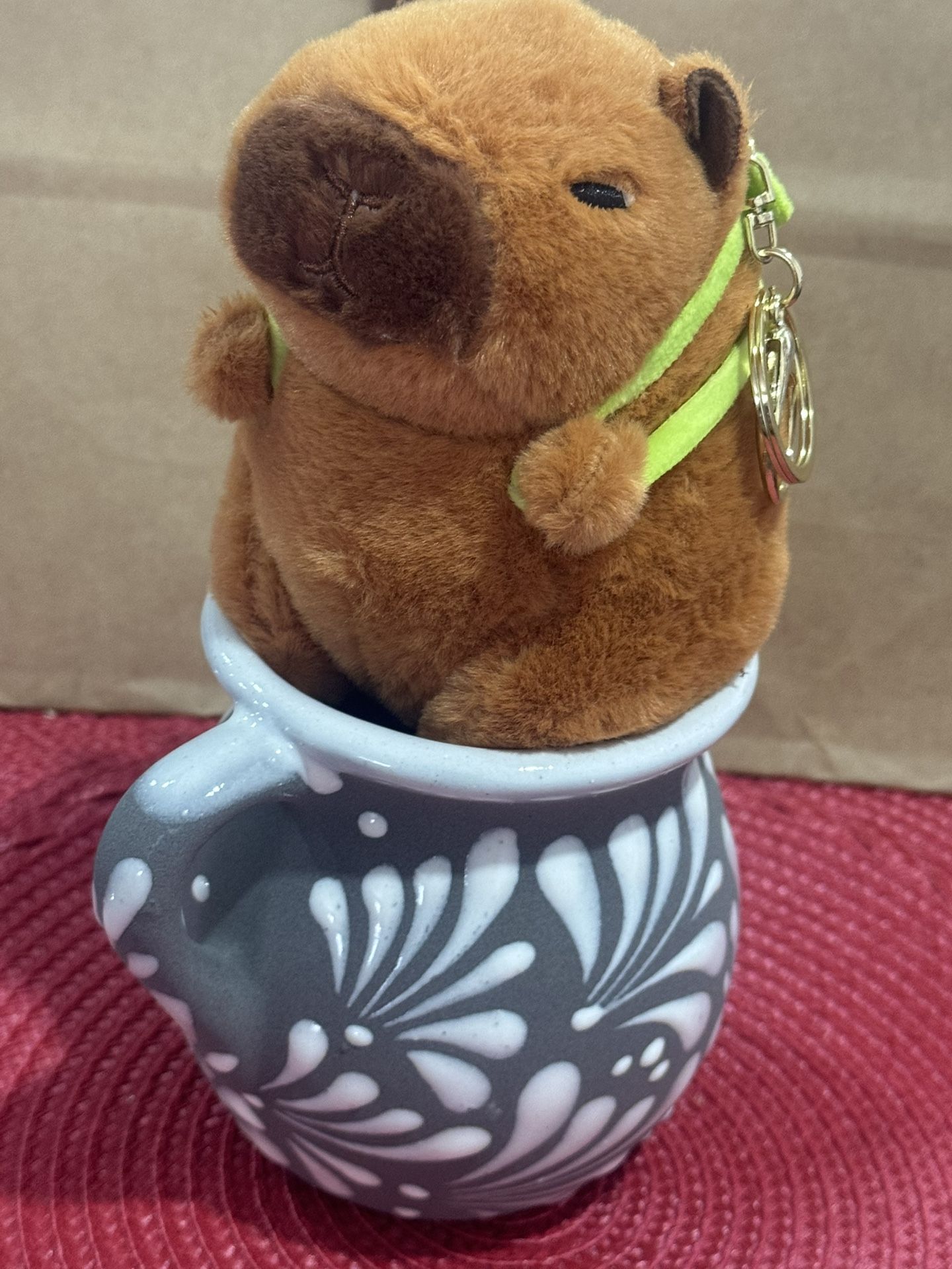 Looking for a cute and unique gift? This adorable plush capybara keychain is the perfect little surprise for someone special and Mexican cup Soft & high-quality plush Lightweight - perfect for keys, purse, backpack, or car mirror It Great for Valentine's Day,