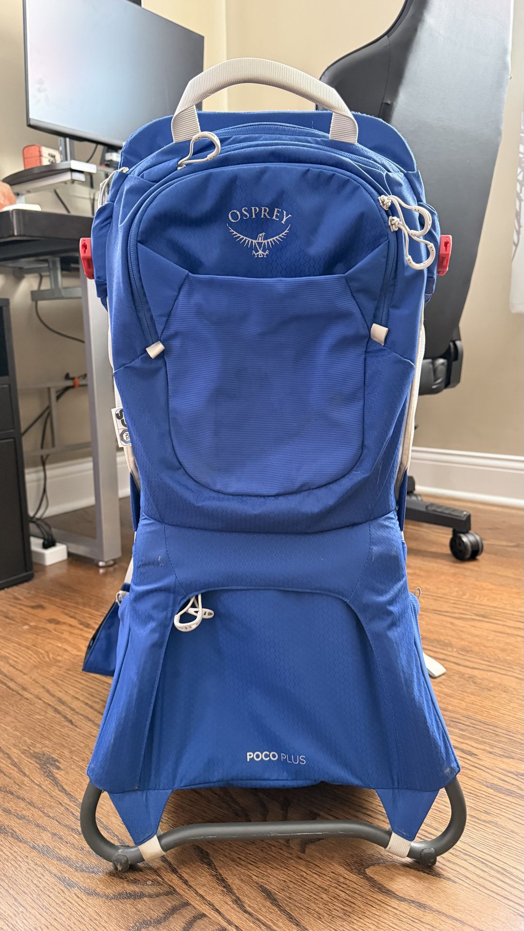 Selling our Osprey Poco Plus child carrier backpack. This is a premium hiking carrier designed for comfort, safety, and long adventures. It’s been well cared for and is in great condition. Perfect for hikes, walks, travel, festivals, or everyday outings where a stroller isn’t practical. Features include: • Adjustable AirSpeed™ ventilated suspension for comfort • Fully framed design with built-in kickstand for safe loading/unloading • Adjustable child harness, seat height, and foot stirrups • Removable, built-in sunshade (UPF protection) • Padded child cockpit with safety harness • Large storage compartment + multiple zip and mesh pockets • Hip belt pockets for phone, snacks, keys • Comfortable shoulder straps and padded hip belt • Lightweight but extremely durable design • Trusted Osprey quality and craftsmanship