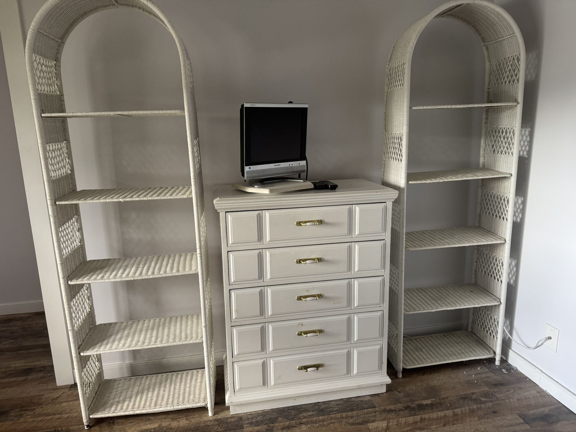 Wicker Desk, Shelving Units & Dresser β Great Condition