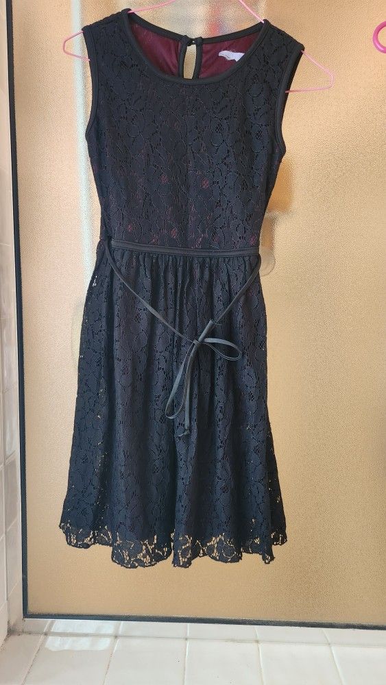 Royal blue with lace accent on waist and sleeves size 7-8. $7. Black lace lined in maroon material. Size 7-8