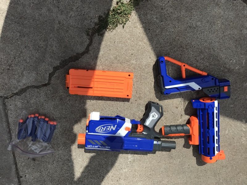 Two nerf guns in very good condition Both come with bullets one comes with additional pieces $25 for both *Sold blue one*
