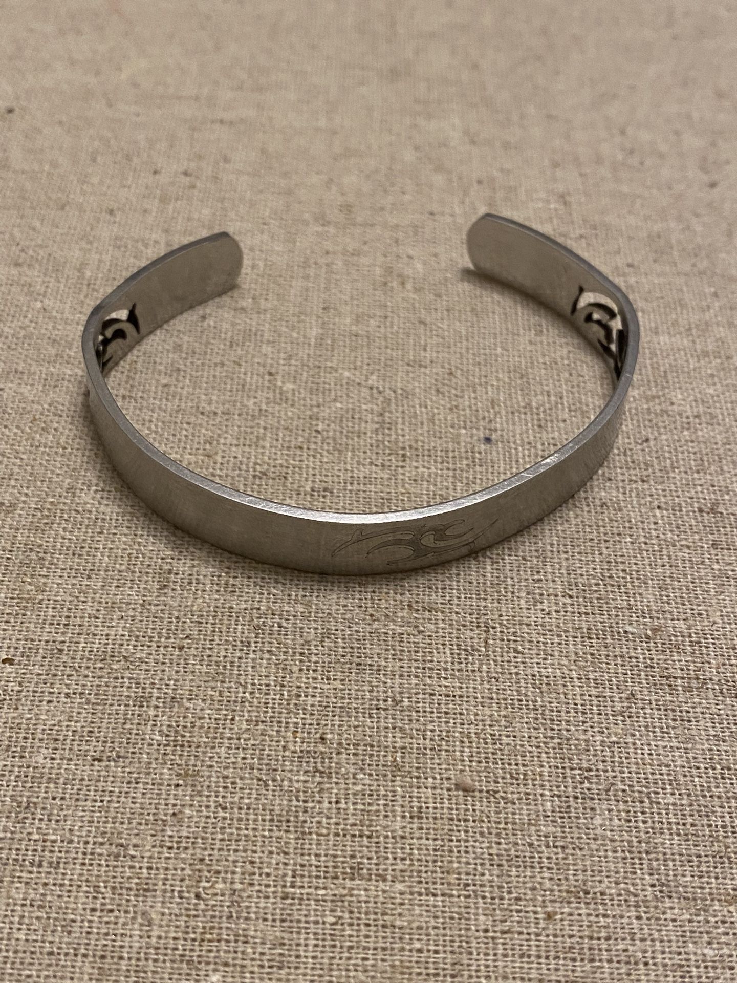 Men’s metal cuff bracelet cut out rocker alternative punk. Unknown material. There are two cut outs and then in the center is an outline. • Trusted seller with 5-star reviews • Prices are negotiable • Fast shipping • On Socials IG, TikTok, Pinterest and Threads #ManBracelet #MensJewelry #CuffBracelet #Rocker #Punk