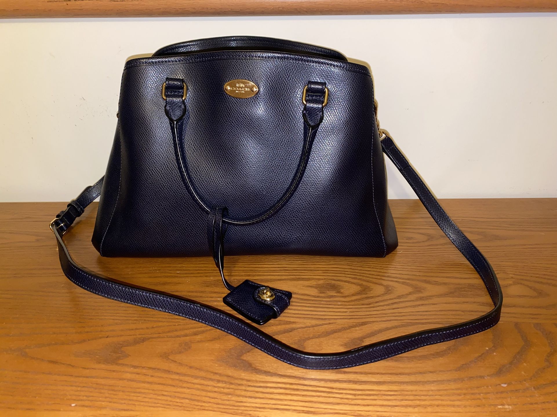 Navy blue coach back with two different length straps. Gently used, smoke free home.