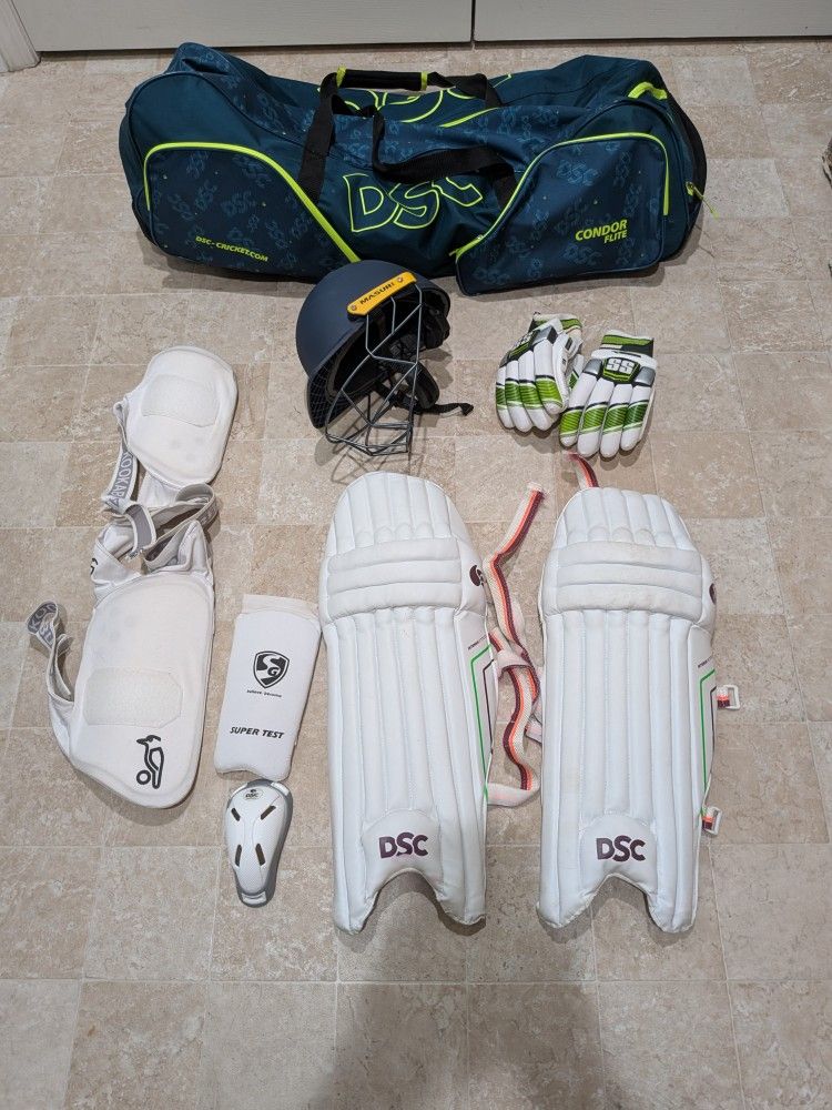 DSC fearless cricket kit ( including bat) , sparingly used for 5 months In very good condition for someone who interested to play serious cricket Reason for selling : not further pursuing cricket , shifted to water polo Bat comes with additional $50
