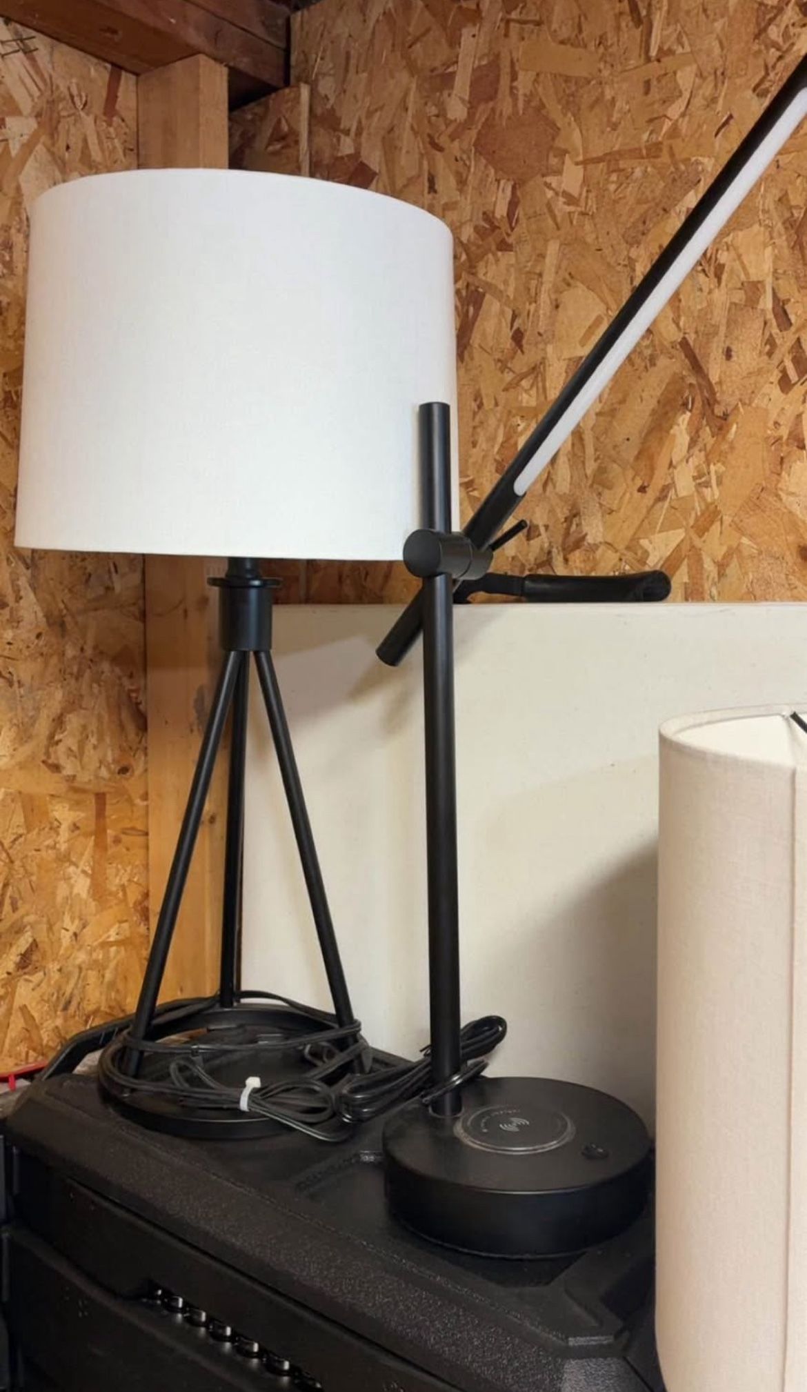 Bought as display never used them. Willing to sell as a pair or individually just send a dm … price negotiable. The lamp on the right has a charging pad for any type of phone.