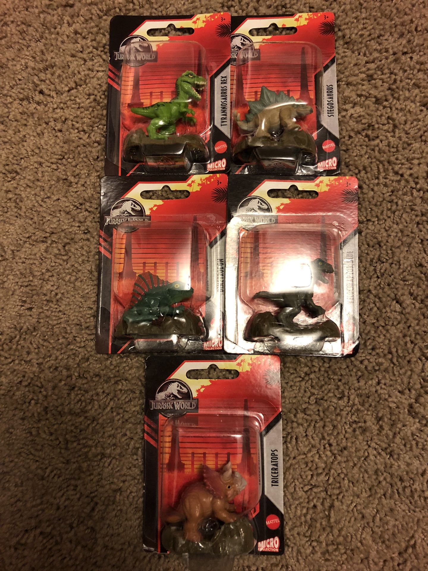 Tyrannosaurus rex, stegosaurus, dimetrodon, triceratops and velociraptor blue. All new and unopened. Must pick up in Mason/ Deerfield Township. Get all five for $10