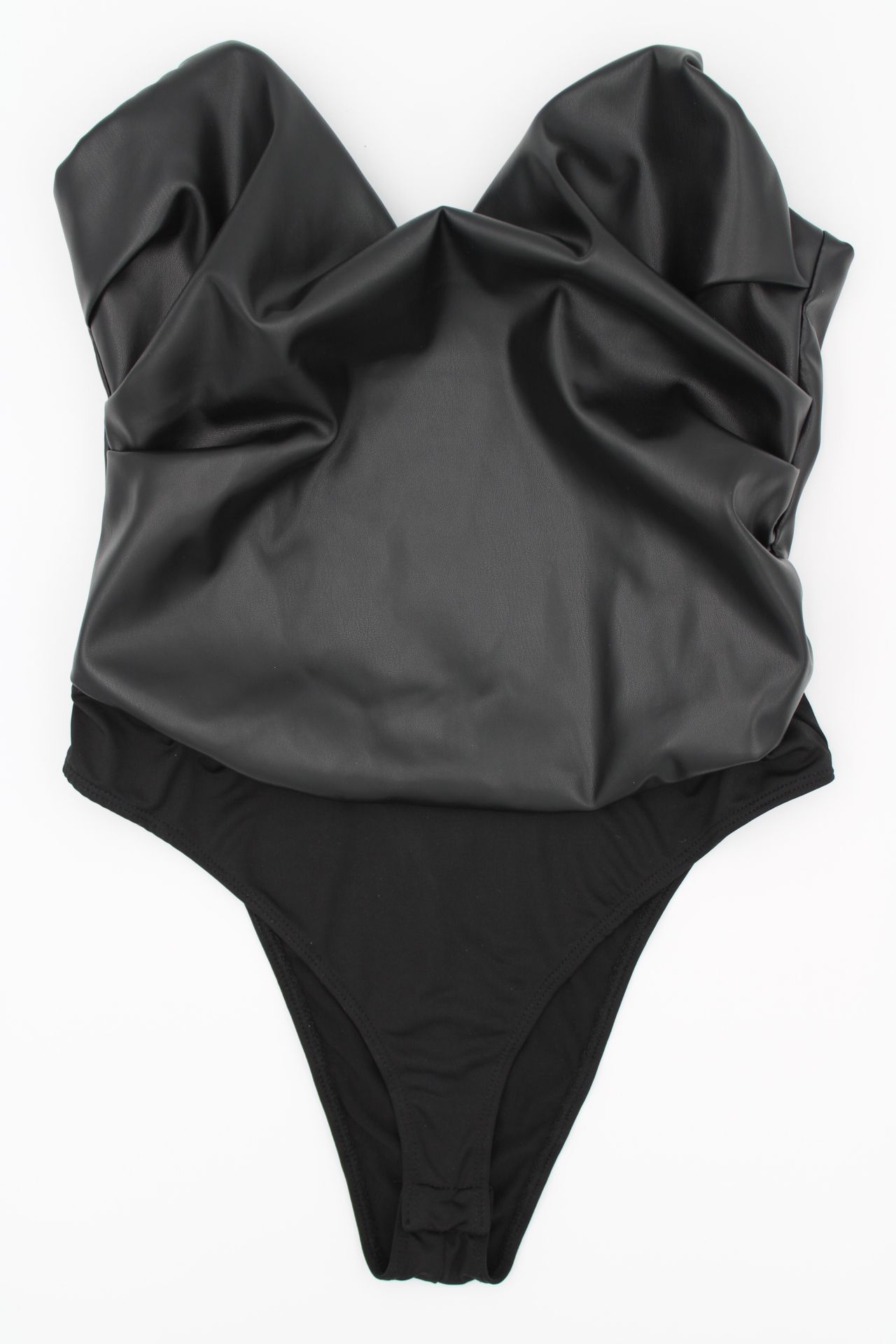 Fashion Nova Black Ruched Strapless Bodysuit Size Small