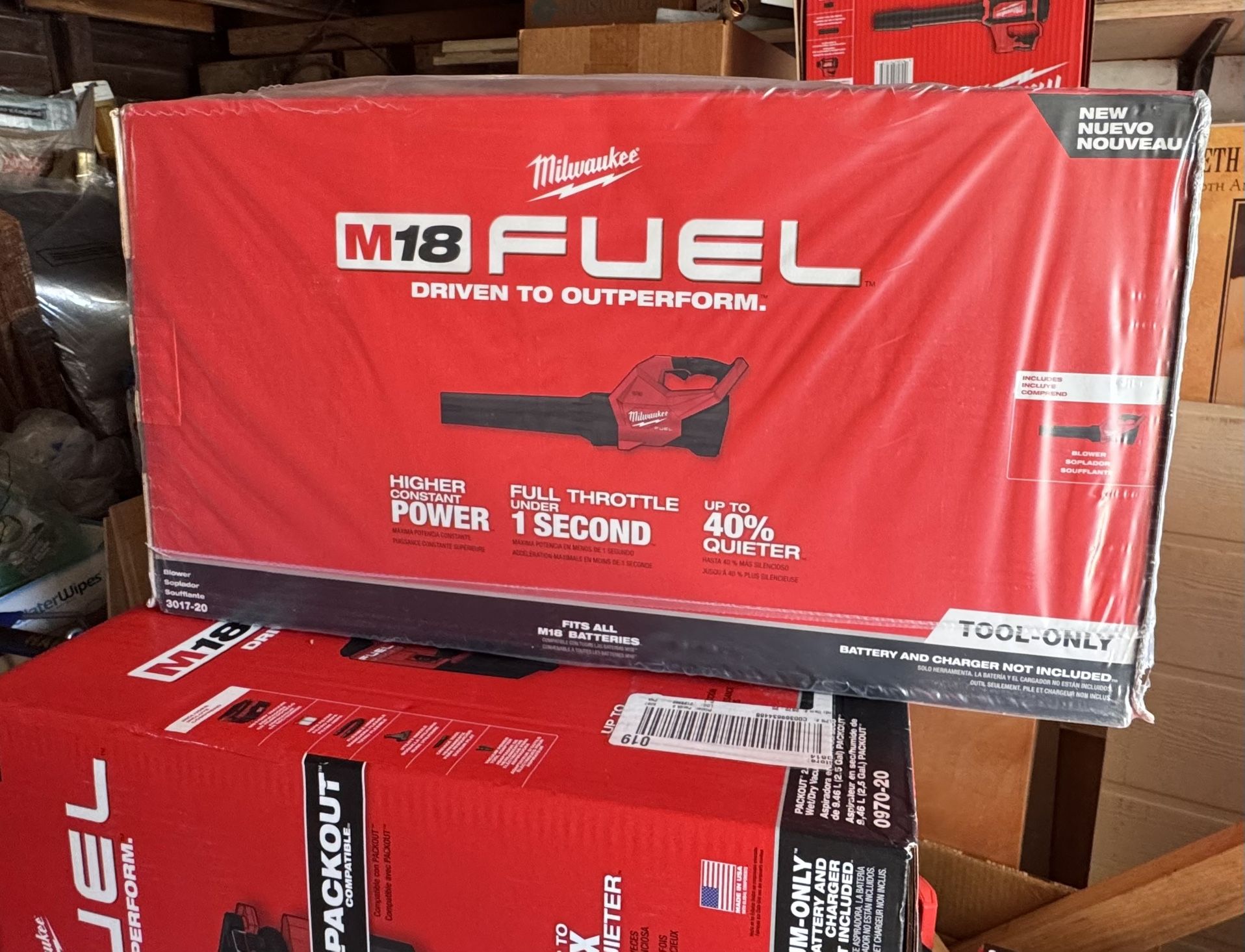 Brand New in Unopened box Cash Only - $150 firm on price No low baller! If you can see this, it’s available. Please don’t on’t ask if it’s available. Your message will be ignored. Thank you! Location is near 5 and 110 freeways, cypress park About This Product The MILWAUKEE M18 FUEL Blower is designed to meet the needs of the landscape maintenance professional in quick, routine cleanups. The POWERSTATE Brushless motor delivers 500 CFM, 120 MPH, and 12.2 N providing users with Higher Constant Power levels allowing users to clear more leaves, grass, and light debris, and reach Full Throttle in Under One Second. This battery powered leaf blower has low noise levels of 54dB(A), Up To 40% Quieter than the competition, allowing users to work comfortably and reducing disturbance to bystanders. REDLINKPLUS Intelligence offers total system communication between the blower and battery for unmatched levels of performance, protection, and productivity. The lightweight, balanced design and ambidextrous variable speed sliding lock on the lever provides users with more clearing control. This blower is optimized for use with M18 REDLITHIUM HIGH OUTPUT batteries. The M18 REDLITHIUM HIGH OUTPUT HD12.0 Battery Pack (not included) provides users with best-in-class power and run time. The M18 FUEL Blower is part of the M18 System, fully compatible with over 250+ solutions. POWERSTATE Brushless Motor delivers a constant 500 CFM, 120 MPH, and 12.2 N of blow force Reaches full throttle in under one second, boosting productivity and control Up to 40% quieter than competitors at only 54 dB(A) Fully compatible with the M18 System, featuring over 250+ tools Variable Speed Trigger for increased user control REDLINK PLUS Intelligence offers total system communication between tool and battery for unmatched levels of performance, protection, and productivity Optimized balance and ambidextrous sliding lock-on deliver improved clearing control No Gas Headaches: No Pull Start, No Engine Maintenance, Low Noise, No Emissions, Less Vibration Nozzle attachment capable, optimizing airflow for different applications Includes: (1) M18 FUEL Blower (3017-20) Includes: (1) M18 FUEL Blower