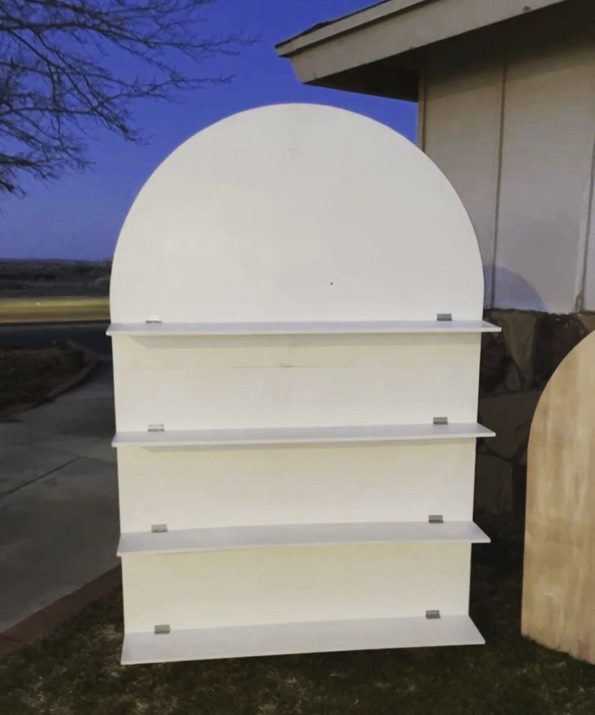6ft tall 42’ wide Shelves 3.5 ft wide Handles to carry, sturdy , comes with stands. Yes we can customize, hand made , new. Price is not negotiable