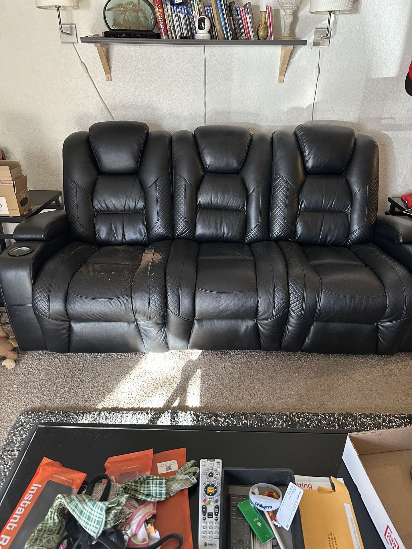 Free Reclining sofa. Originally bought from American furniture. Some fading on the right side (as pictured). Must pick up with your own help. I cannot help move the sofa and I cannot deliver