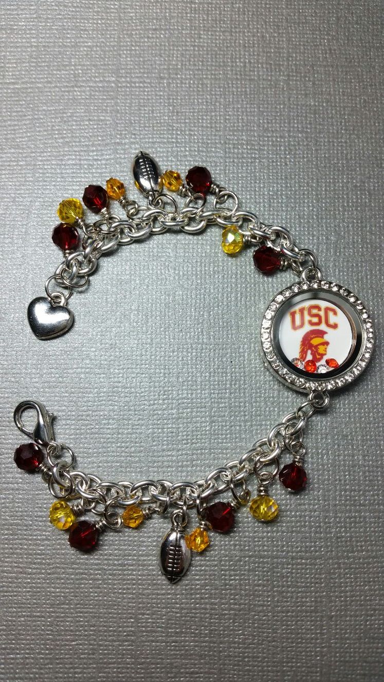 USC Trojans Beaded Locket Bracelet I can hand stamp one initial on the heart charm.. I make personalized photo bracelets too. Message me for more info.