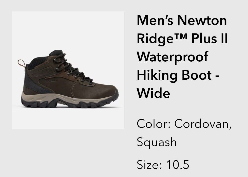 Columbia Mens hiking boots. Size 10.5 Wide. Brand new. Never worn. Gave as gift but too small. Too late to return. Paid $100. Will sell for $75.