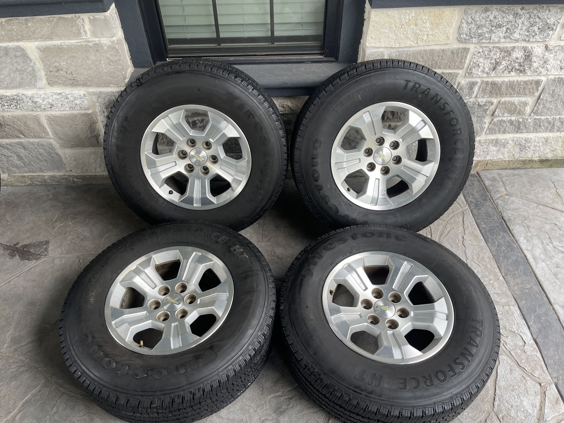 Hablo español For Sale – Tires & Wheels – North Houston • Firestone Transforce H/T LT275/70R18 tires • TPMS not included • Only 1,500 miles on the tires • OEM GM wheels • No damage • Wheels have been inspected and balanced – ready to hit the road 📍 Located in North Houston 💰 Asking $750.00 💵 Accepting cash or Zelle