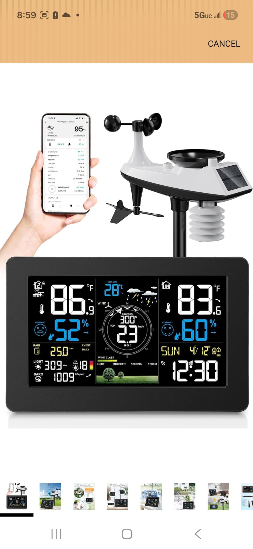 WiFi Weather Station Indoor Outdoor Thermometer Hygrometer, 7.5" HD VA Large Display, Rain Gauge & Wind Speed Monitor, Barometric Pressure, UV Index Feels Like, 12H Forecast, App Remote Control, WWVB New in box Retails $170