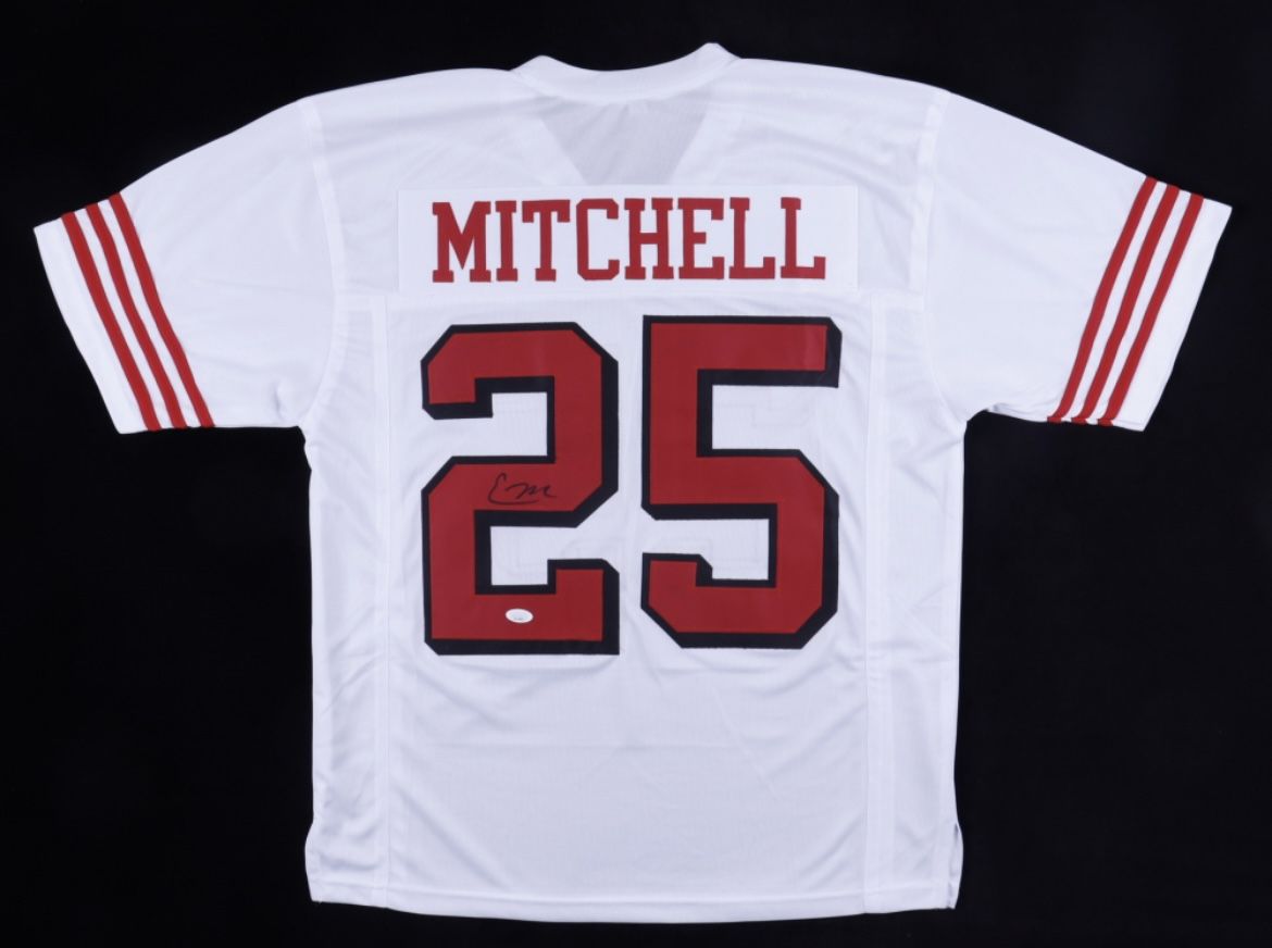 New Elijah Mitchell 49er retro autographed jersey with JSACOA sticker and card