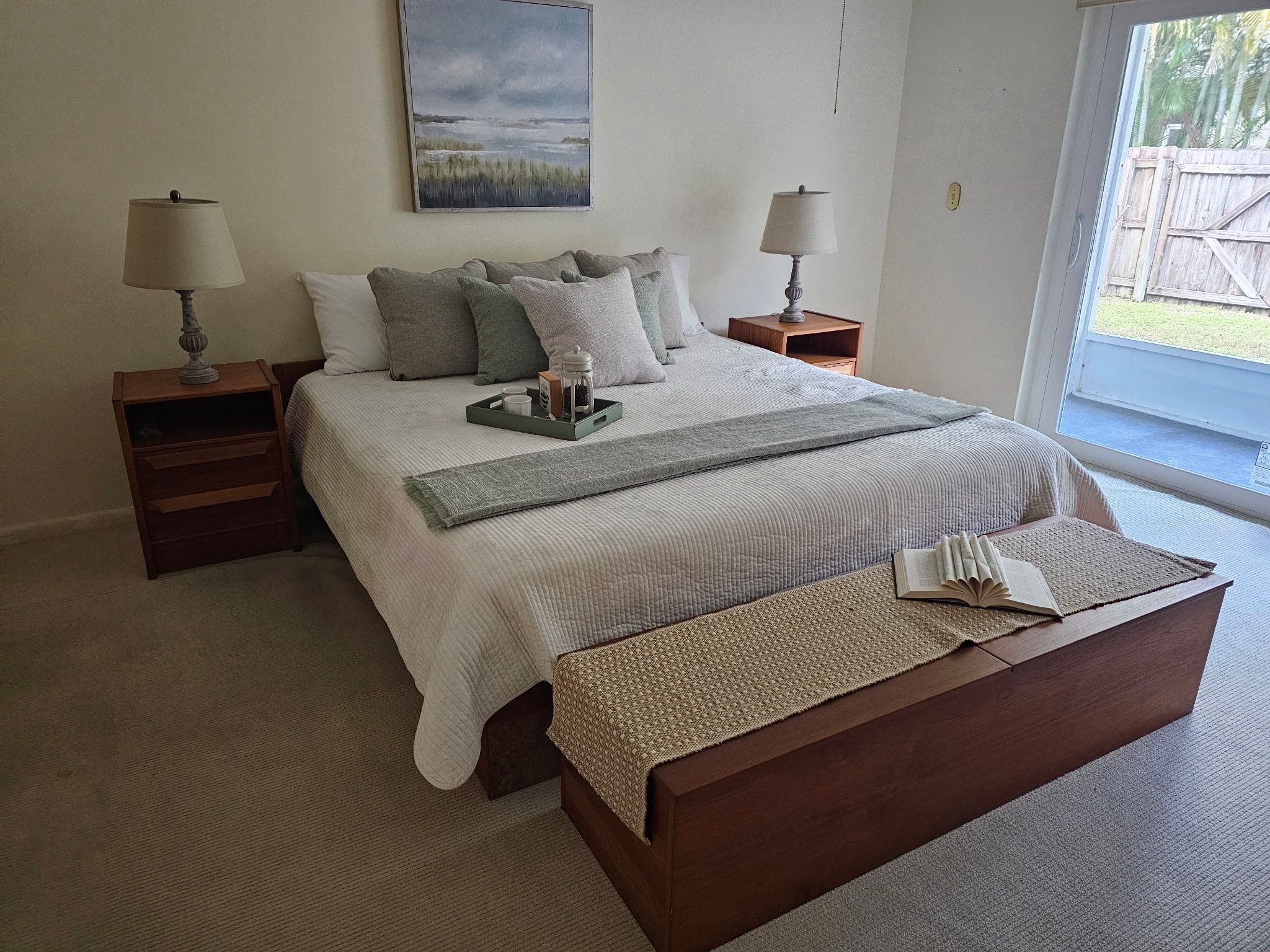 Teak wood bedroom set. Includes new mattress with cover, king bed frame with drawers, 2 nightstands, dresser with mirror, chest. Beautiful like new matching set! Needs gone by this weekend. Selling house. $$500 OBO