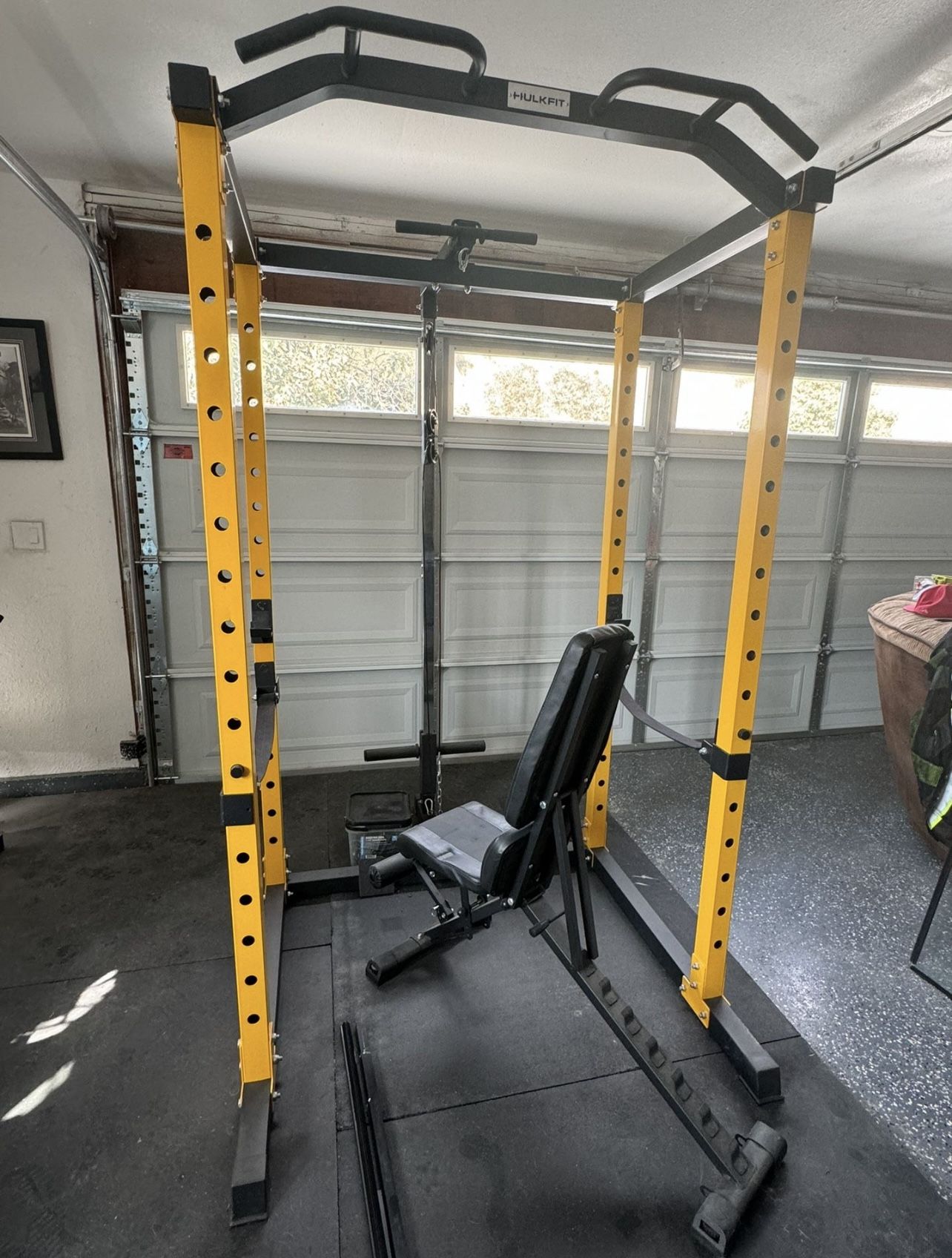 40$- weight rack 40$- EZ curl bar 60$- 45lb Barbell 120$-45lbs(2) 90$- 35lbs(2) 65$-25lbs(2) 25$- 10lbs(2) 15$-5 w 2.5 lbs (2) 440$- whole bundle 650$ - Bench/squat/dips/pull ups/ added pull down system rack w/ two additional grips. Comes w bench, clips for weight, and safety straps Everything is great condition. 250$ - Brand new bow flex adjustable weights dumbbells 40$ - per rubber mat (5x) $1,000 for all equipment or if would like to buy certain items that is okay too. Need gone by end of year, open to negotiation!