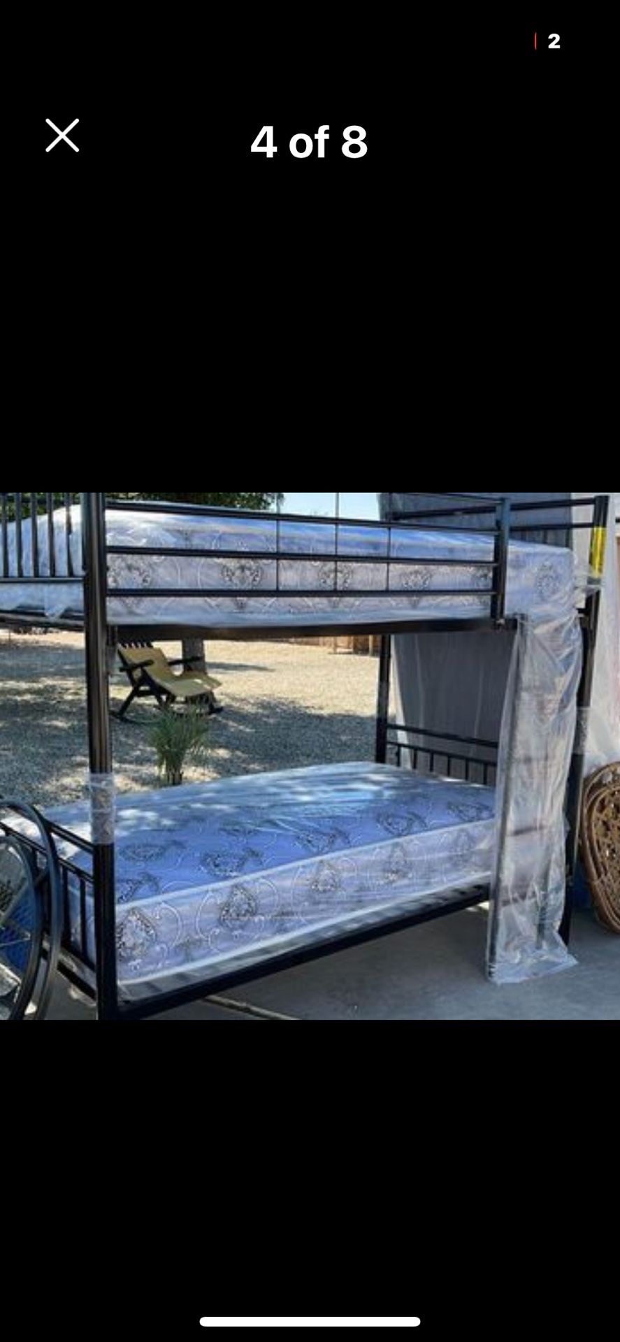 Twin size bunkbed 2mattress included double sided Free delivery to apple valley Hesperia Victorville phelan adelanto Barstow we also assemble it for you if you like …Sanberdadino Fontana Riverside Los Angeles San Fernando valley theres a 20.00 delivery fee Litera viene con 2 colchones twin doble vista y tambien la armamos si gusta gratis delivery apple valley hesperia Victorville phelan Adelanto Barstow ….SanBerdadino Fontana Riverside Los Angeles San Fernando valley son 20.00 extra de delivery