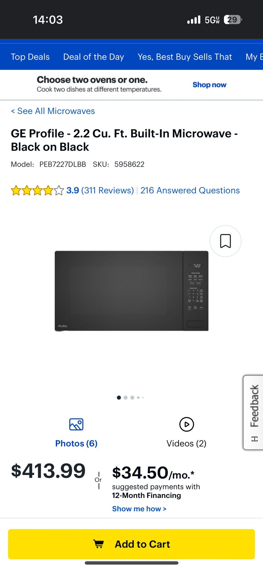 GE Profile - 2.2 Cu. Ft. Built-In Microwave - Black On Black