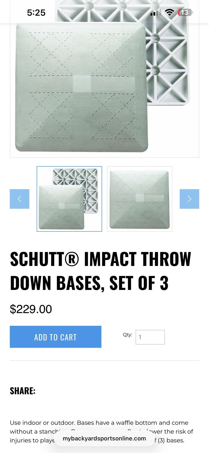 Used once— Set of 3 solid baseball bases— heavy and very durable