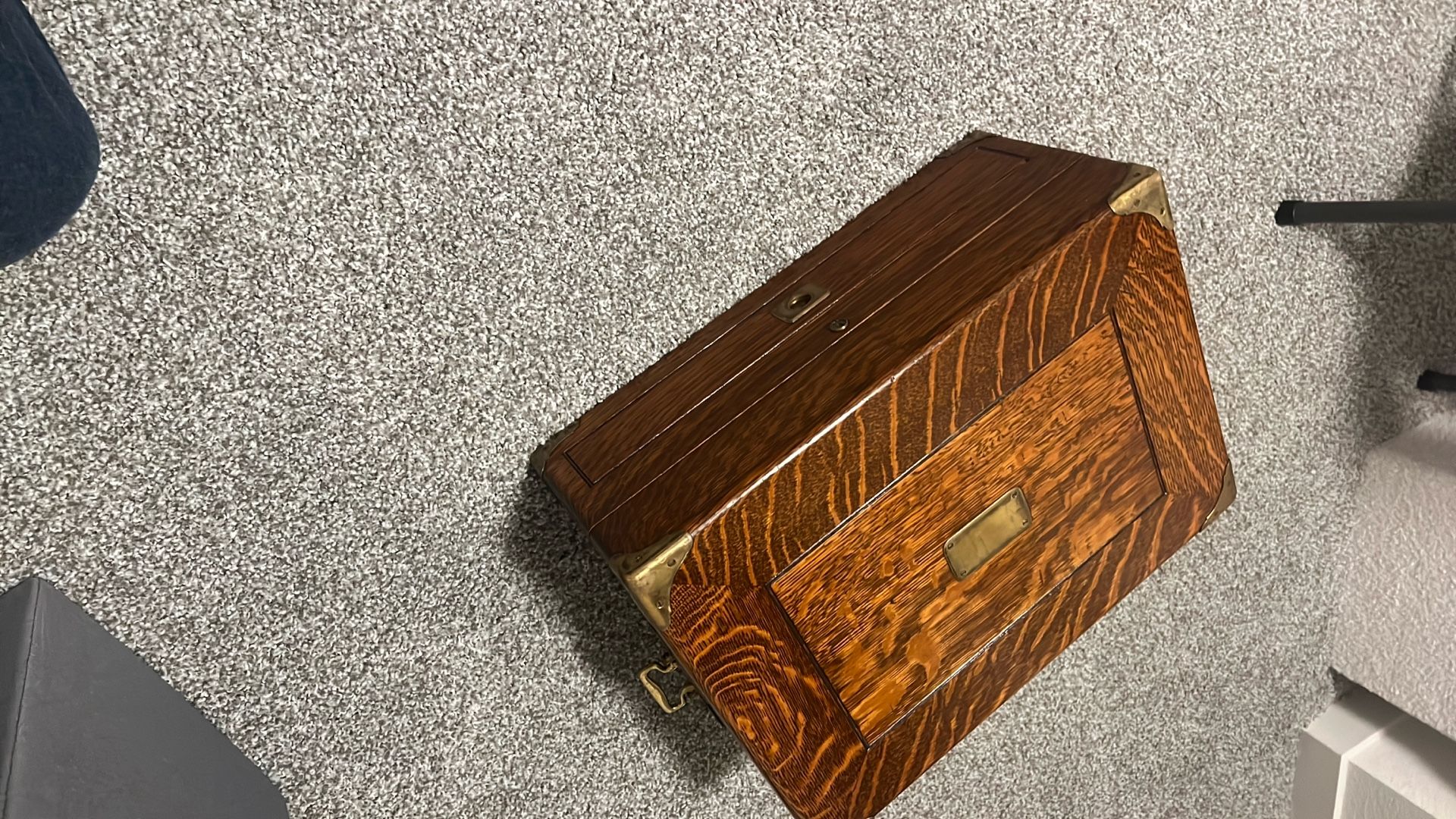 Antique Quartersawn Oak Brass Flatware Silverware Presentation Wooden Chest Box,good condition