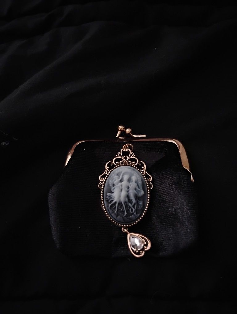 Made with a pendant glued on and black soft fabric
