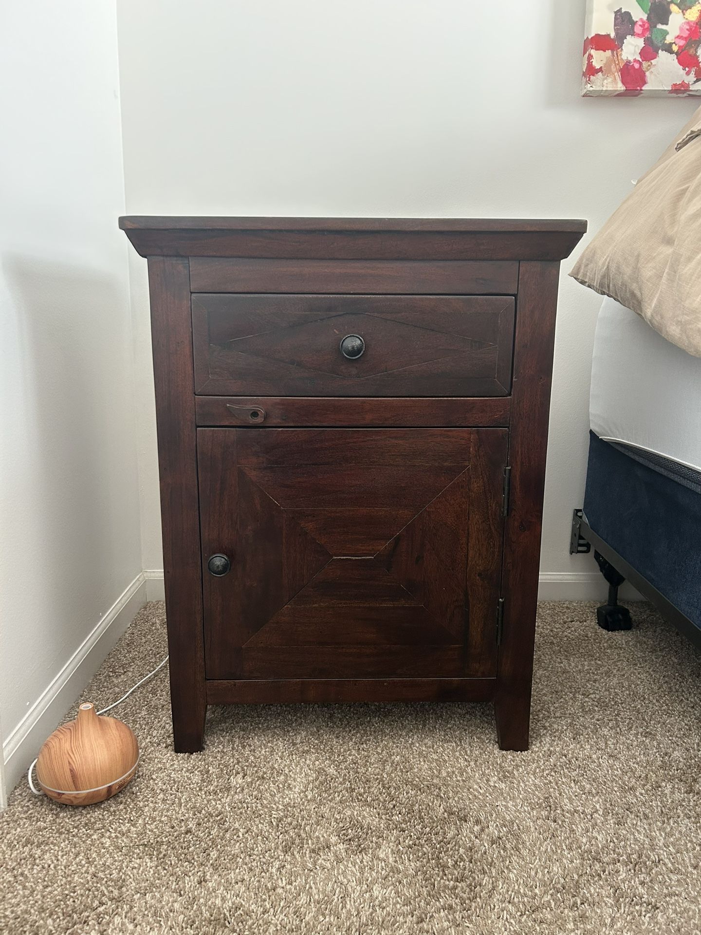 Beautiful heavy duty wood side table for sale. This is the heaviest side table I have ever come across. Beautiful condition. Getting rid of this as we clear out my moms estate. Only available until 1/10. Price firm. Pick up in Lake Zurich