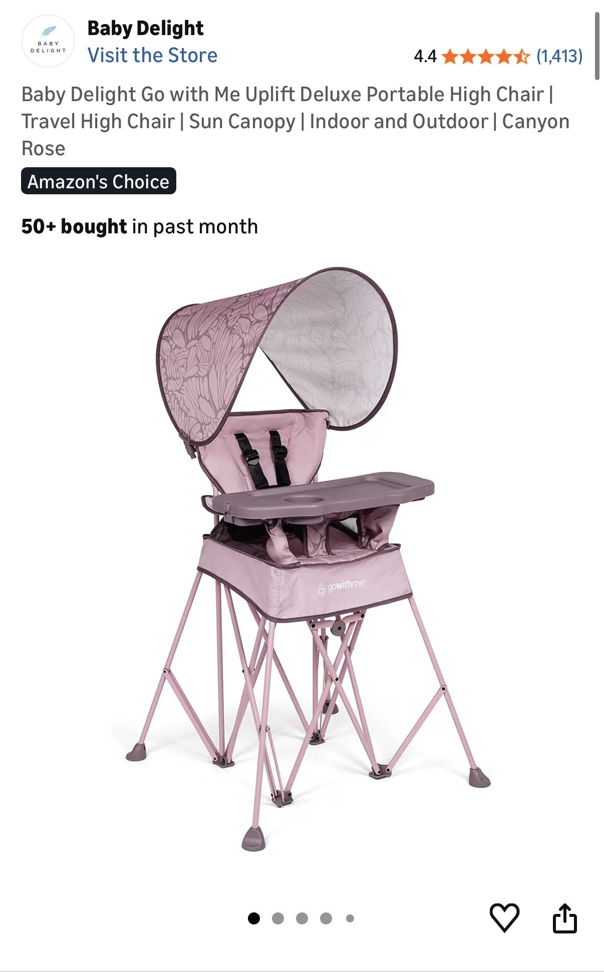 Baby Delight Portable High Chair Foldable Beach Chair Baby Go with Me Uplift Deluxe | Travel High Chair | Sun Canopy | Indoor and Outdoor Canyon Rose
