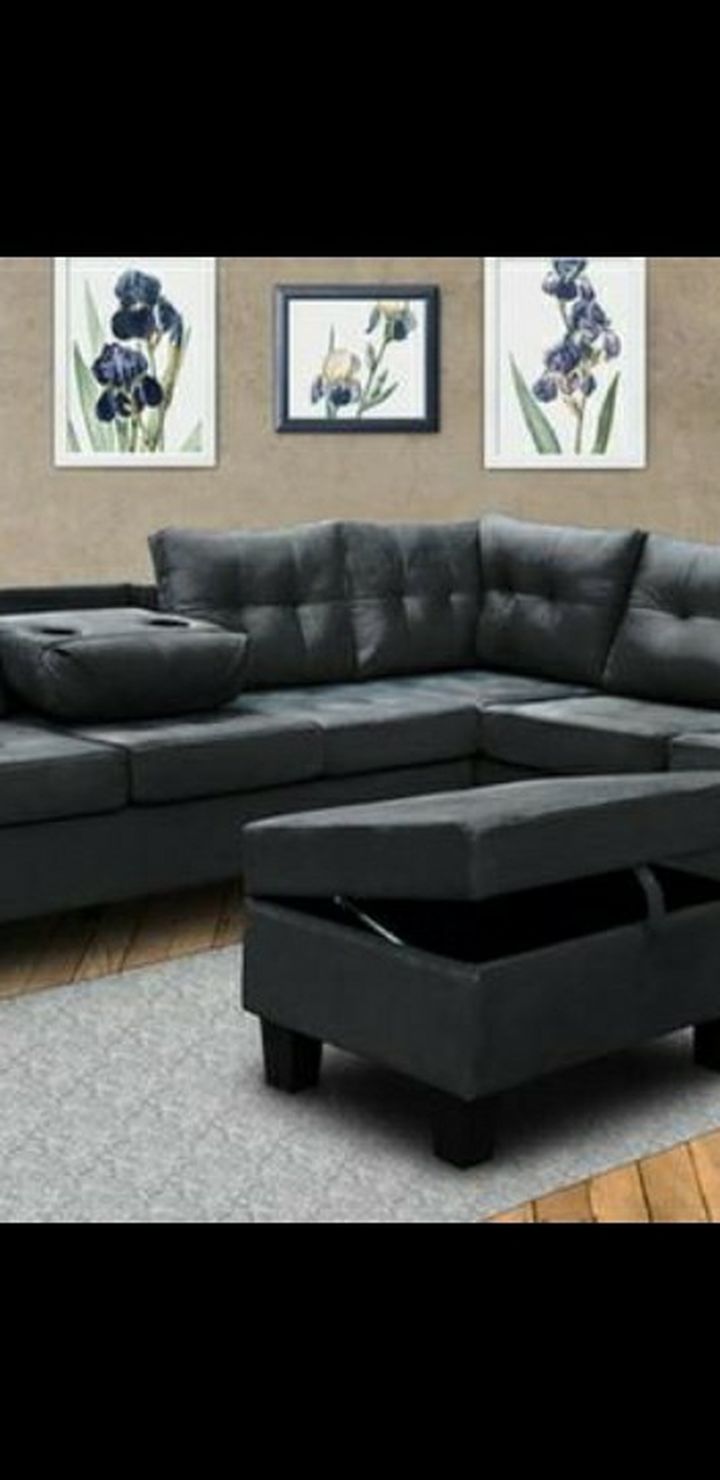 Color: Black Material: Thick Microfiber Overall Size: 103"L X 71"W X 35"H Storage Ottoman: 32"L X 17"W X 18"H