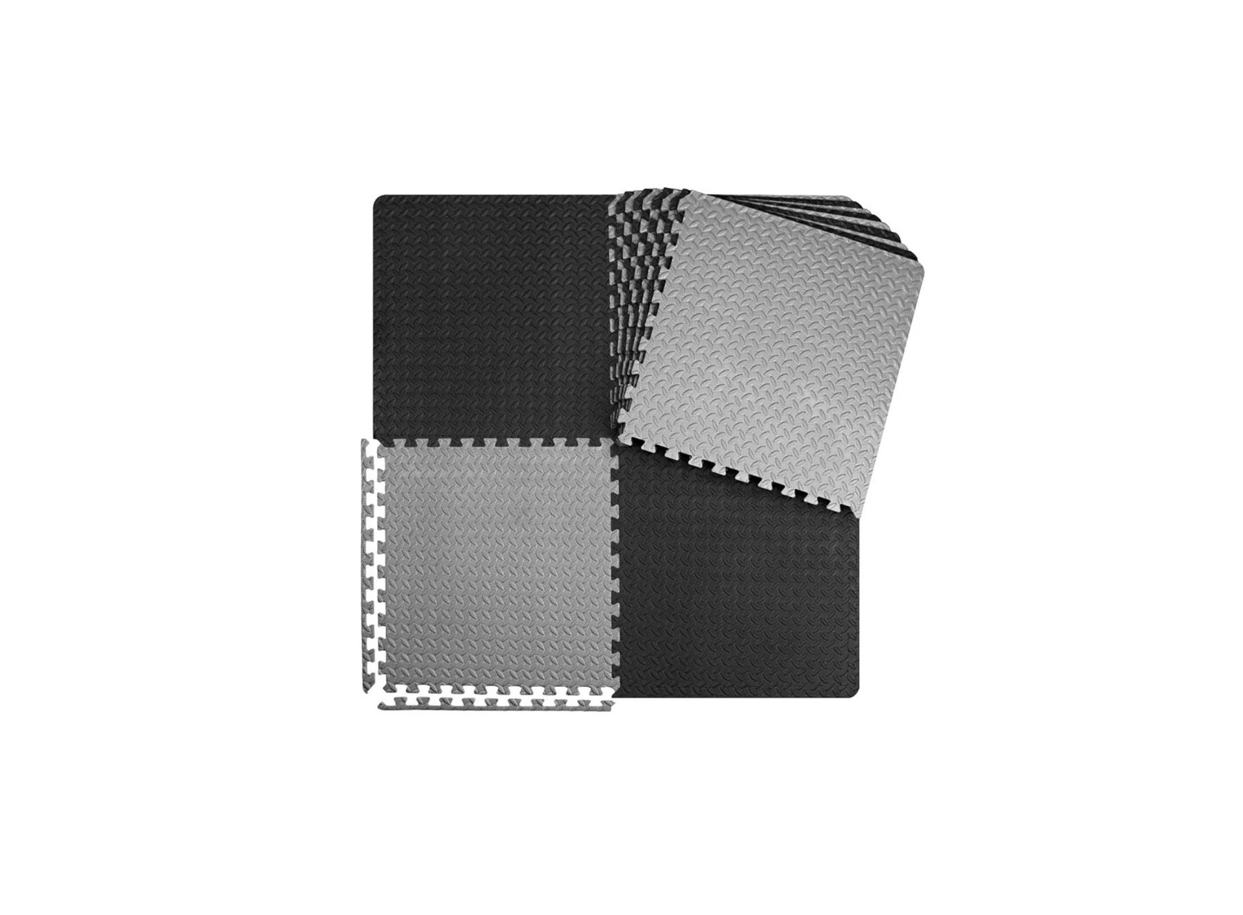 BRAND: INNHOM ITEM: INTERLOCKING GYM FLOOR TILES MATERIAL: FOAM CONDITION: USED GOOD CONDITION SIZE: 12 x 24 x 48 QTY: 6 BLACK / 6 GREY = 12 CT OP: $63.96