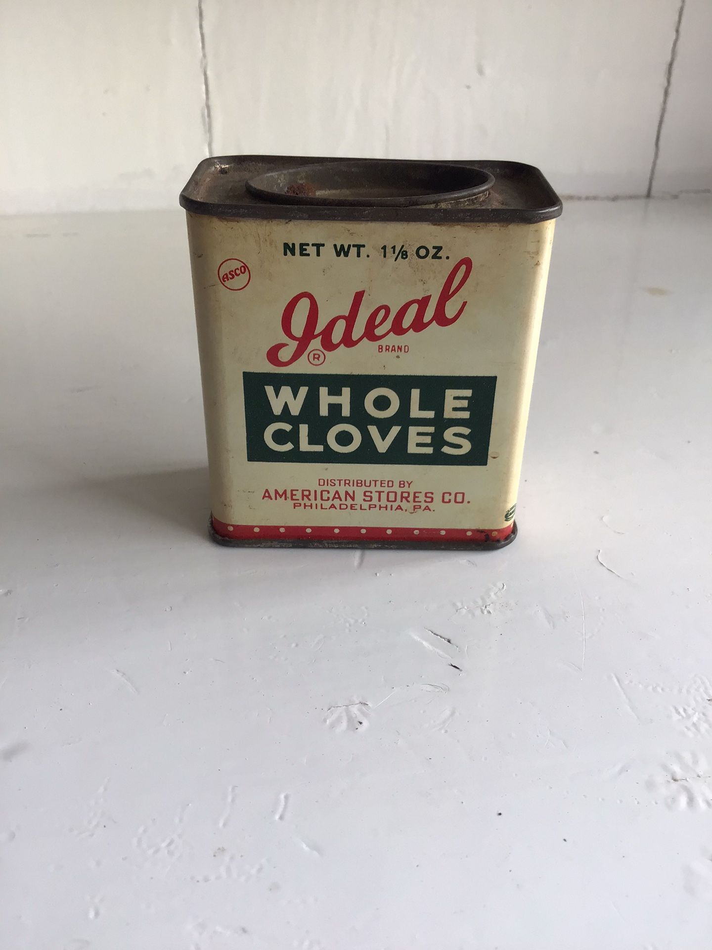 Vintage Ideal Whole Cloves Tin from the 1940’s, in gray condition vibrant colors & still has product inside it. Please refer to pics for complete details.