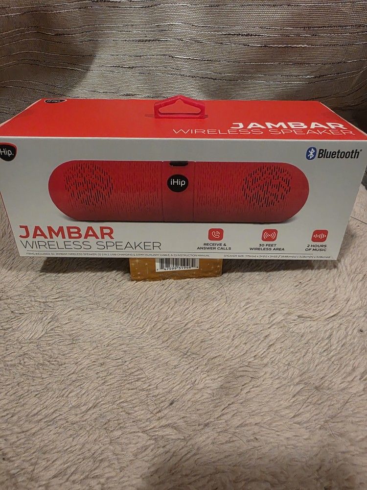 Red wireless speaker / receive & answer calls/ 30 feet wireless area/ 2 hours of music