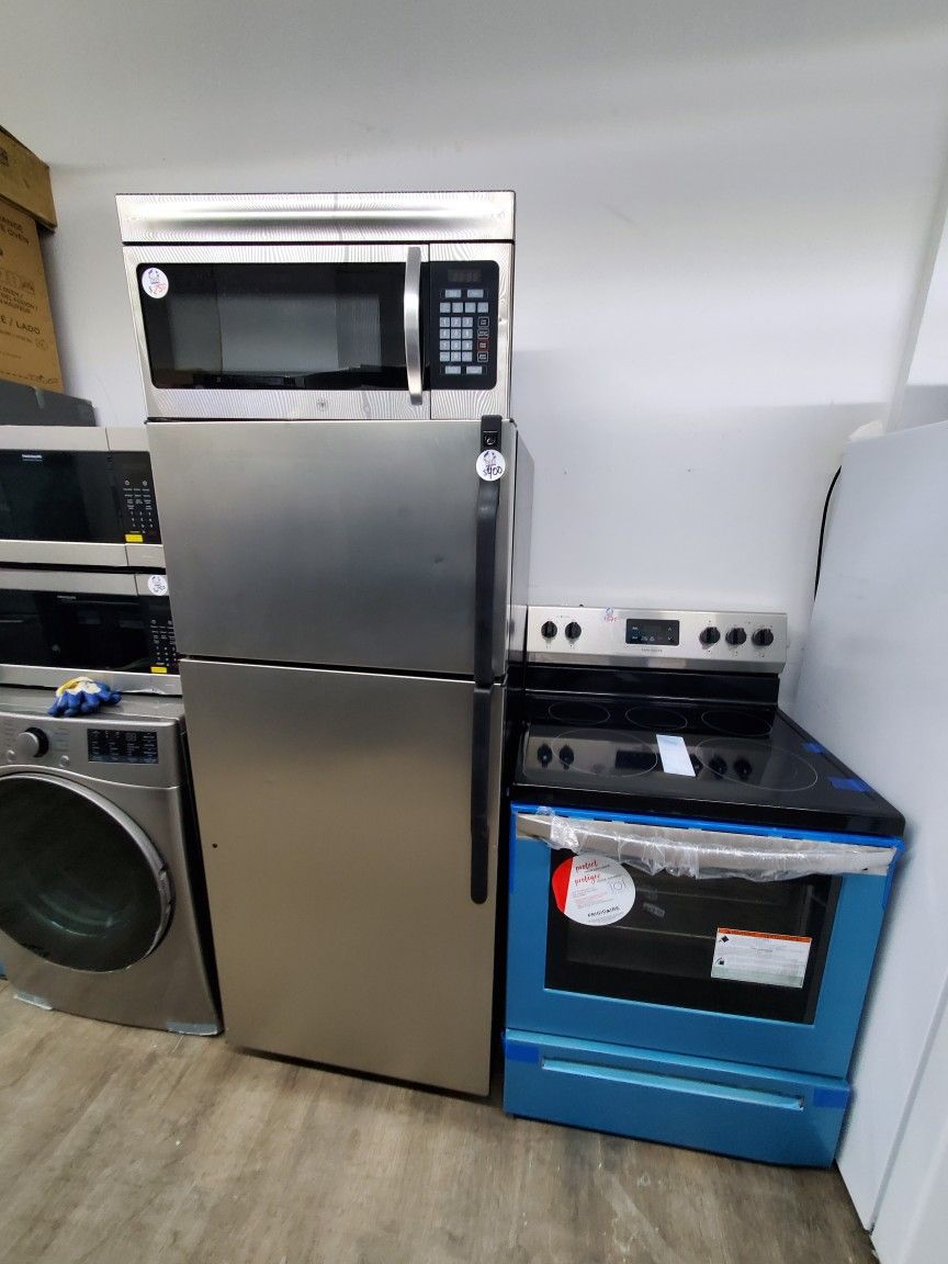 stove microwave open box fridge side 28 use great condition warranty..stove electric 220 volt..all 3 item ..$1200